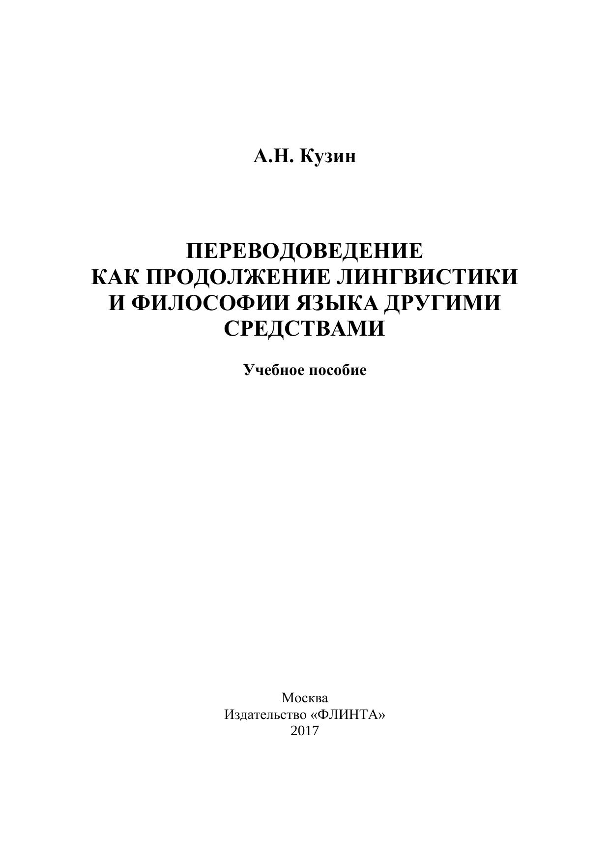 Переводоведение как продолжение лингвистики и философии языка другими средствами: учебное пособие