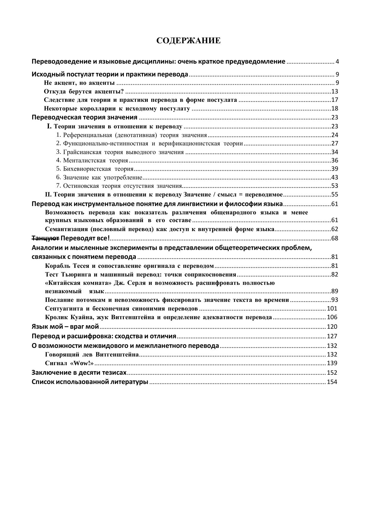 В пособии проблема перевода рассматривается с привлечением теоретического аппарата лингвистики, философии языка и семиотики. Обсуждаются такие вызывающие споры вопросы, как «Возможен или невозможен перевод?», «Что конкретно переводится при трансфере речи или текста с одного языка на другой?», «Каковы критерии того, что оригинал и переведенный текст говорят одно и то же?». Обсуждается приложимость и адекватность наиболее известных философских и лингвистических теорий значения к процессу и результату перевода. Помимо этого, внимание уделено использованию понятия перевода как инструмента для решения некоторых концептуальных проблем лингвистики и философии языка. В спекулятивной части книги на основе накопленных знаний о природе языка и накопленных эмпирических данных анализируется потенциальная возможность перевода при общении разных видов на нашей планете и при потенциальном контакте с