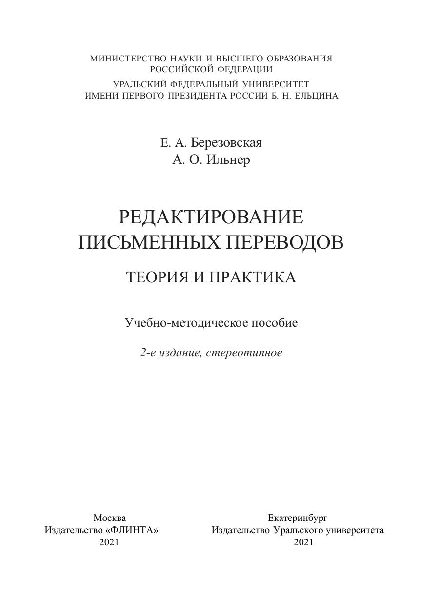 Редактирование письменных переводов: теория и практика