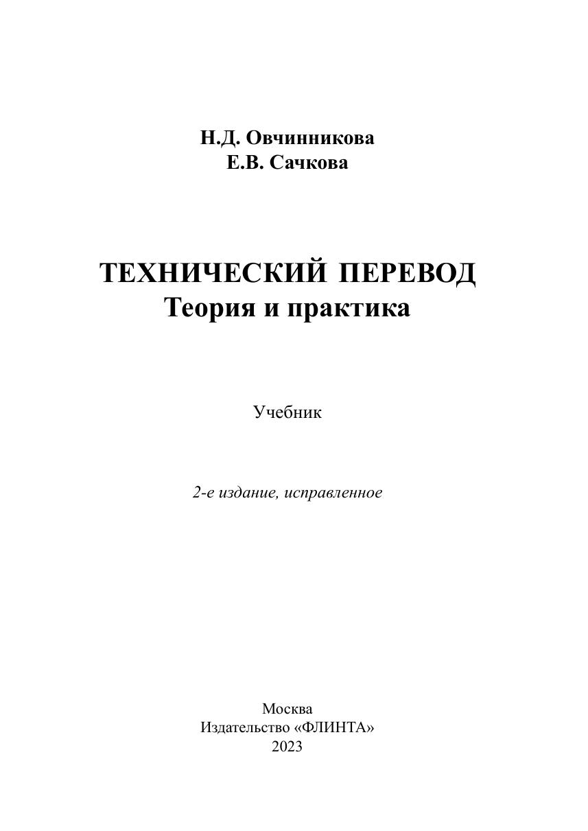 Учебник предлагается для преподавания основ технического перевода студентам очной формы обучения при подготовке по направлению 45.03.02 «Лингвистика» профиль «Перевод и переводоведение», программе дополнительного профессионального образования и профессиональной переподготовки «Переводчик в сфере профессиональной коммуникации», а также для студентов технических вузов, имеющих в программе подготовки дисциплину «Технический перевод».