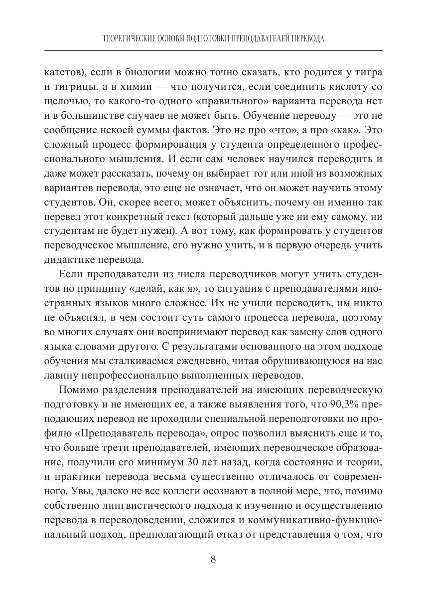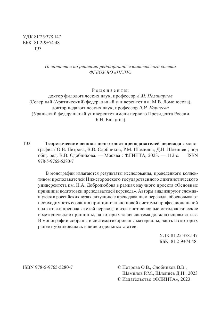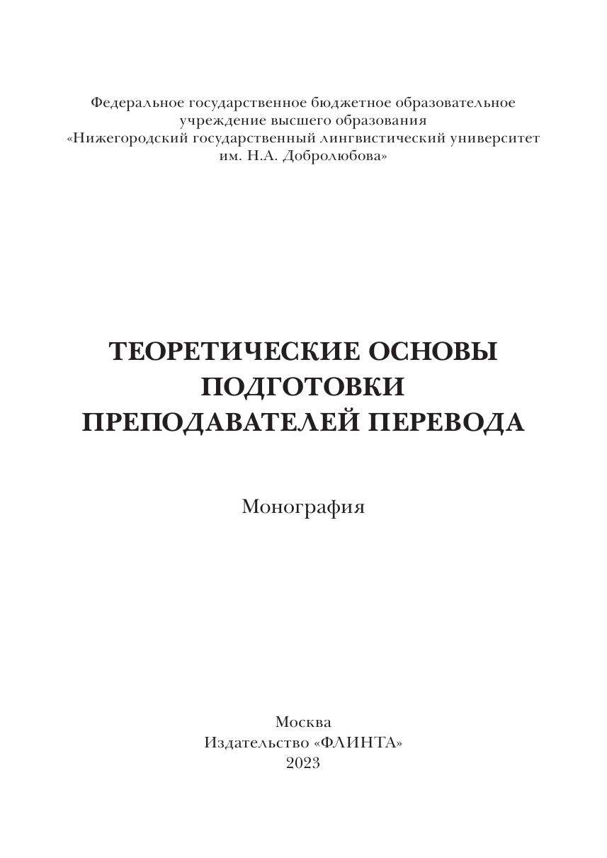 В монографии излагаются результаты исследования, проведенного коллективом преподавателей Нижегородского государственного лингвистического университета им. Н.А. Добролюбова в рамках научного проекта «Основные принципы подготовки преподавателей перевода». Авторы анализируют сложившуюся в российских вузах ситуацию с преподаванием перевода, обосновывают необходимость создания принципиально новой системы профессиональной подготовки преподавателей перевода и излагают основные методологические и методические принципы, на которых такая система должна основываться. В монографии собраны и систематизированы материалы, часть из которых ранее публиковалась в виде отдельных статей.