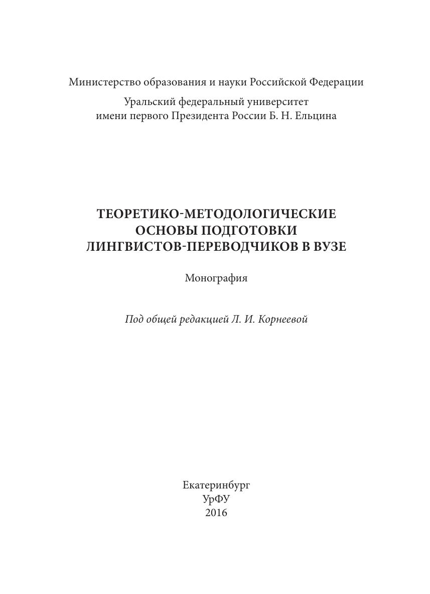 Теоретико-методологические основы подготовки лингвистов-переводчиков в вузе: монография