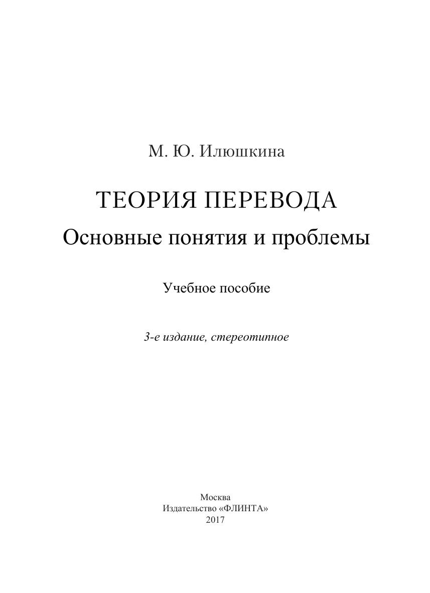 Теория перевода : основные понятия и проблемы : учебное пособие