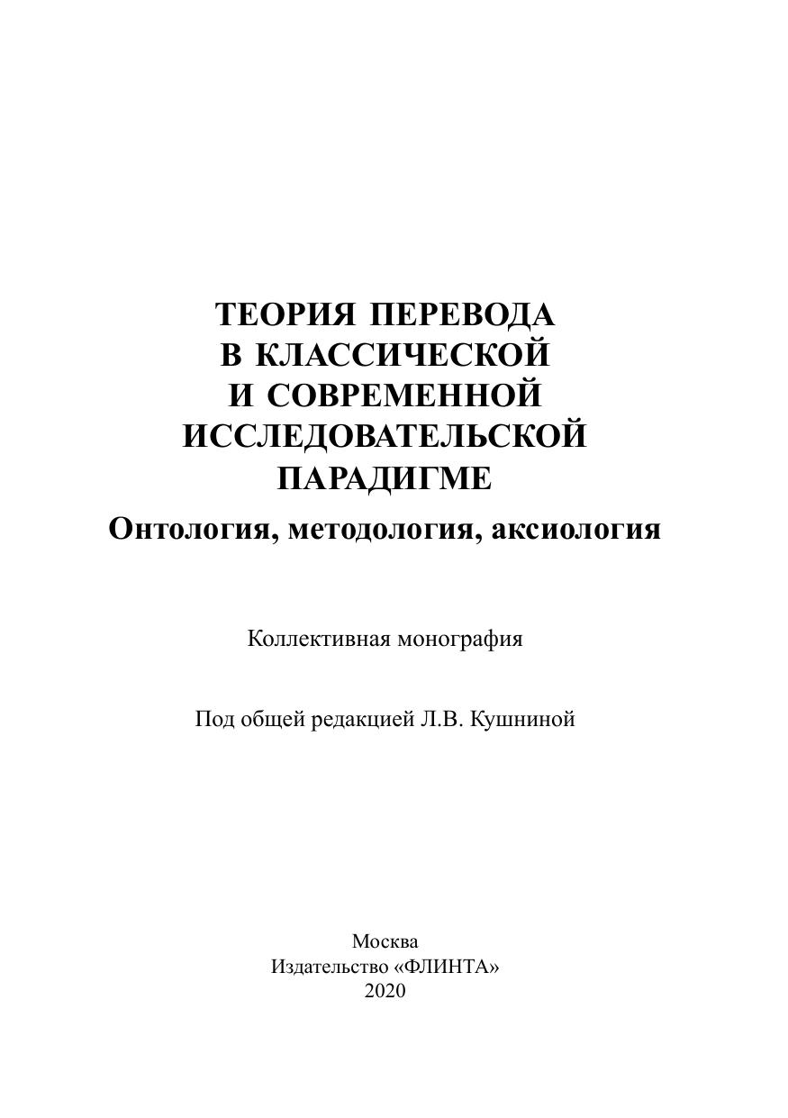 Теория перевода в классической и современной исследовательской парадигме: онтология, методология, аксиология