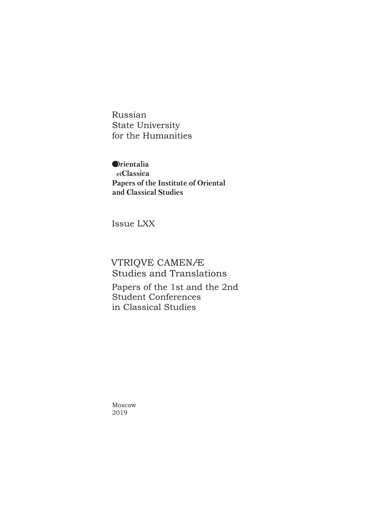 VTRIQVE CAMEAE: Исследования. Переводы : Материалы 1-й и 2-й межвуз. студенч. конференций по классич. филологии