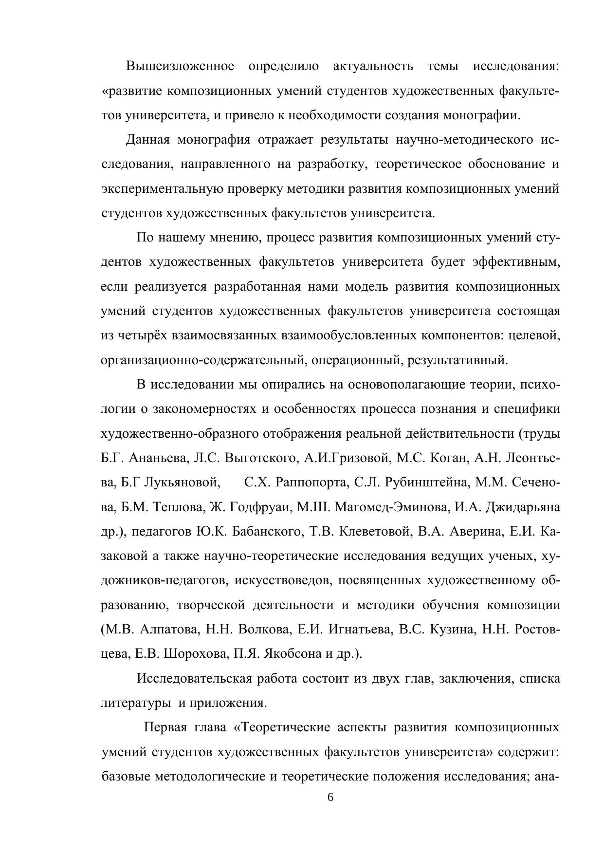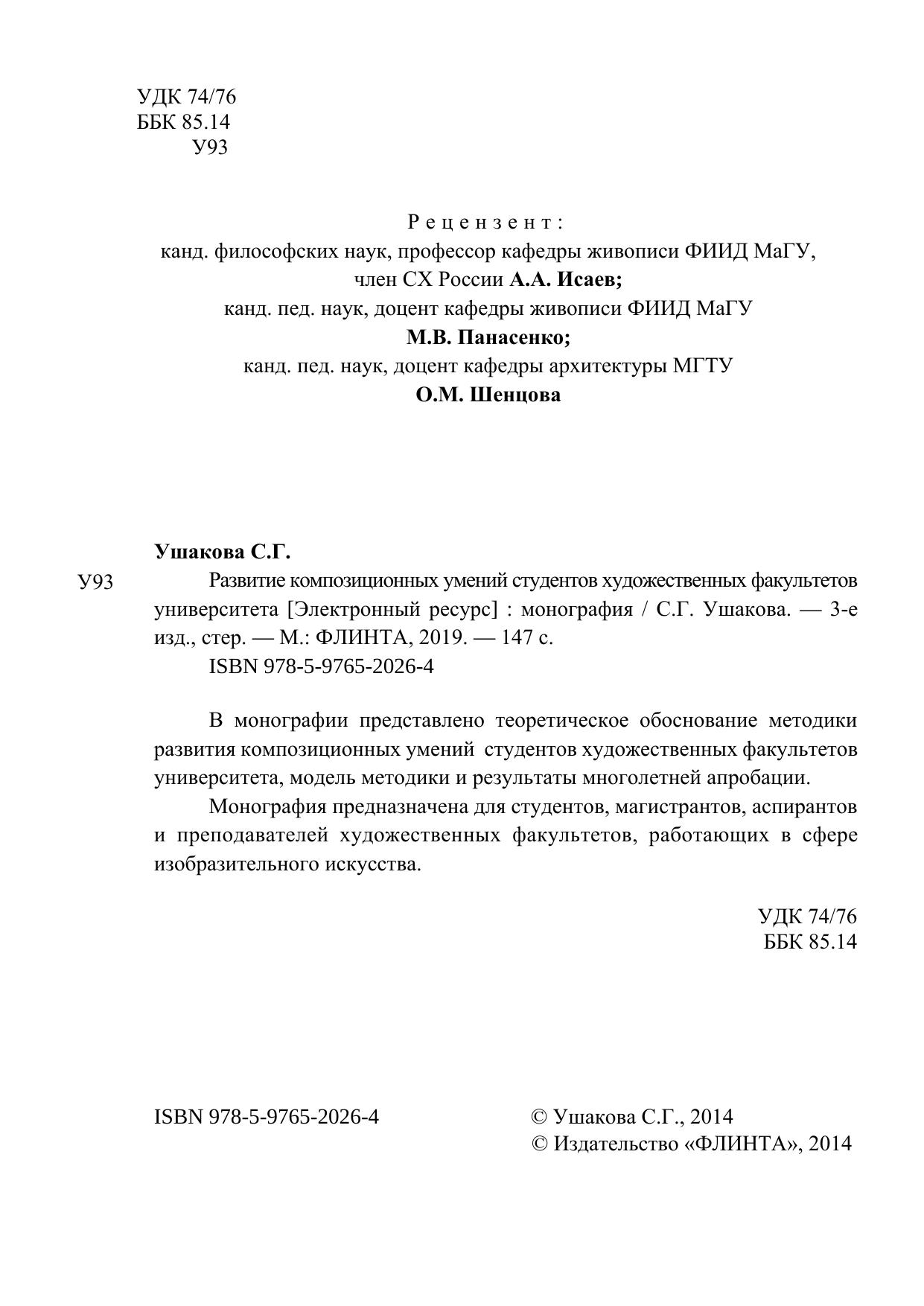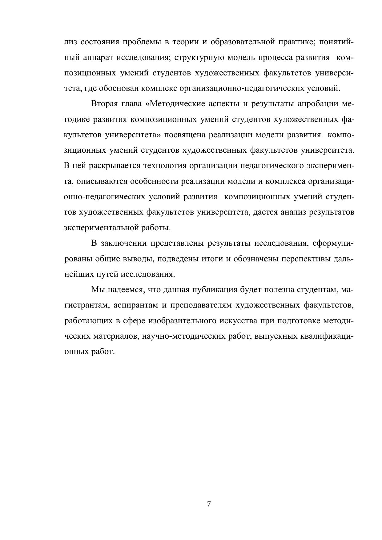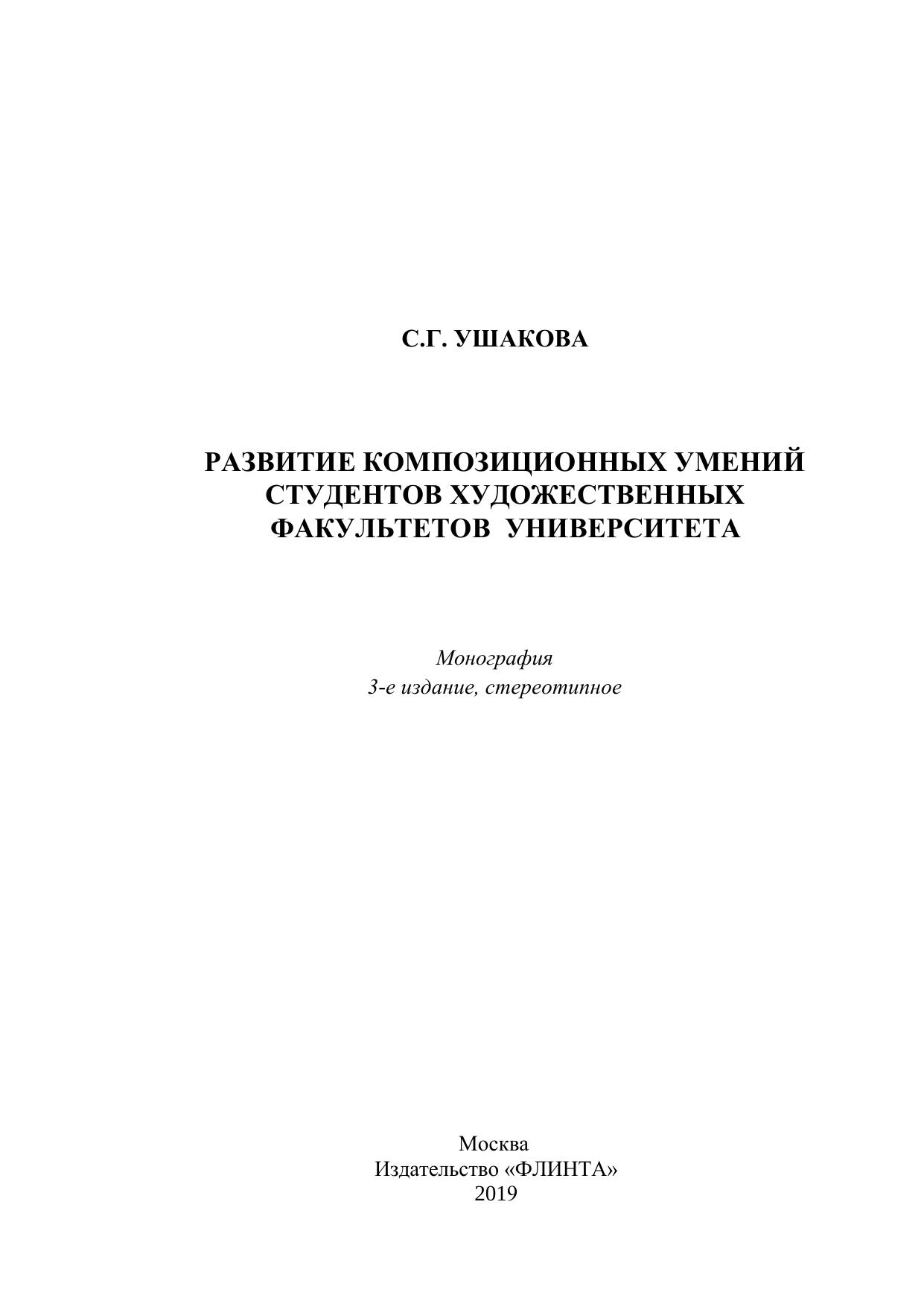В монографии представлено теоретическое обоснование методики развития композиционных умений студентов художественных факультетов университета, модель методики и результаты многолетней апробации.