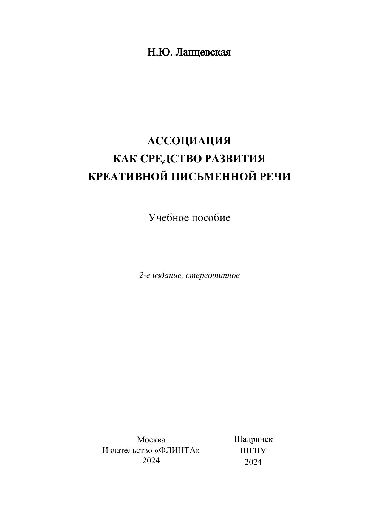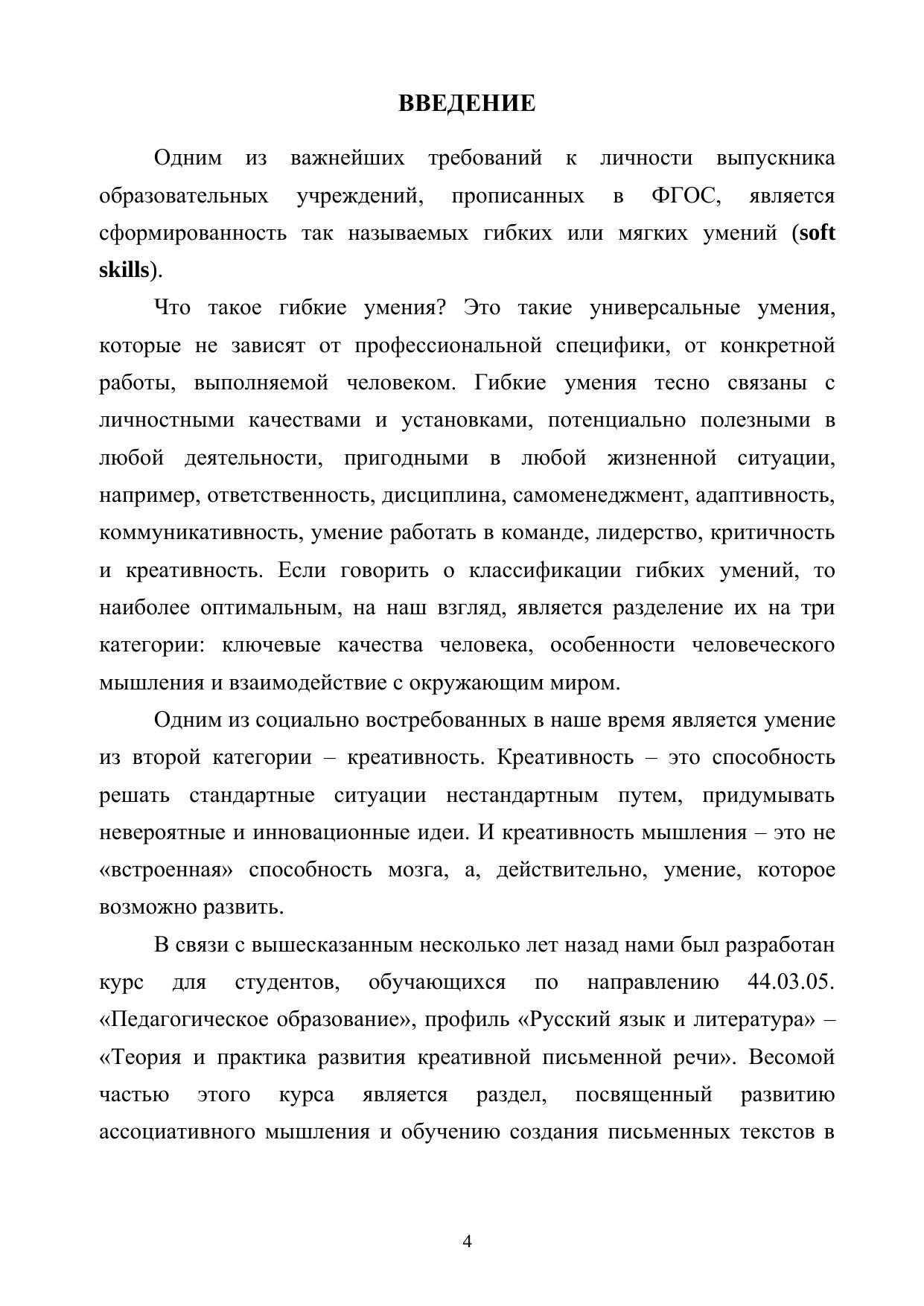 Пособие адресовано студентам, обучающимся по программе академического бакалавриата по направлению 44.03.05. «Педагогическое образование», профиль «Русский язык и литература». Раскрывает вопросы, связанные с креативностью – одним из востребованных умений ХХI века; особенностями креативного мышления и речи. В пособии приводятся упражнения для развития креативной письменной речи, содержатся задания и контрольные вопросы.