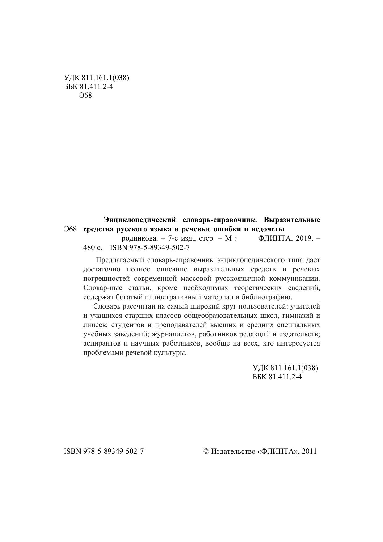 Предлагаемый словарь-справочник энциклопедического типа дает достаточно полное описание выразительных средств и речевых погрешностей современной массовой русскоязычной коммуникации. Словарные статьи, кроме необходимых теоретических сведений, содержат богатый иллюстративный материал и библиографию.