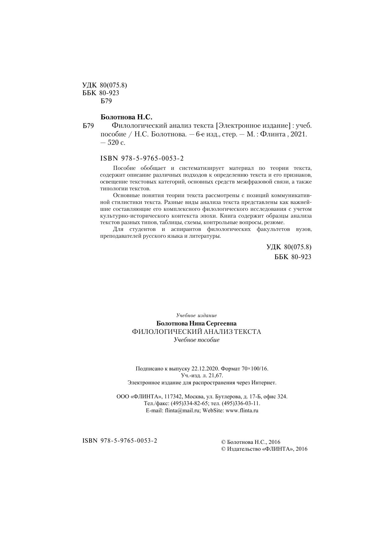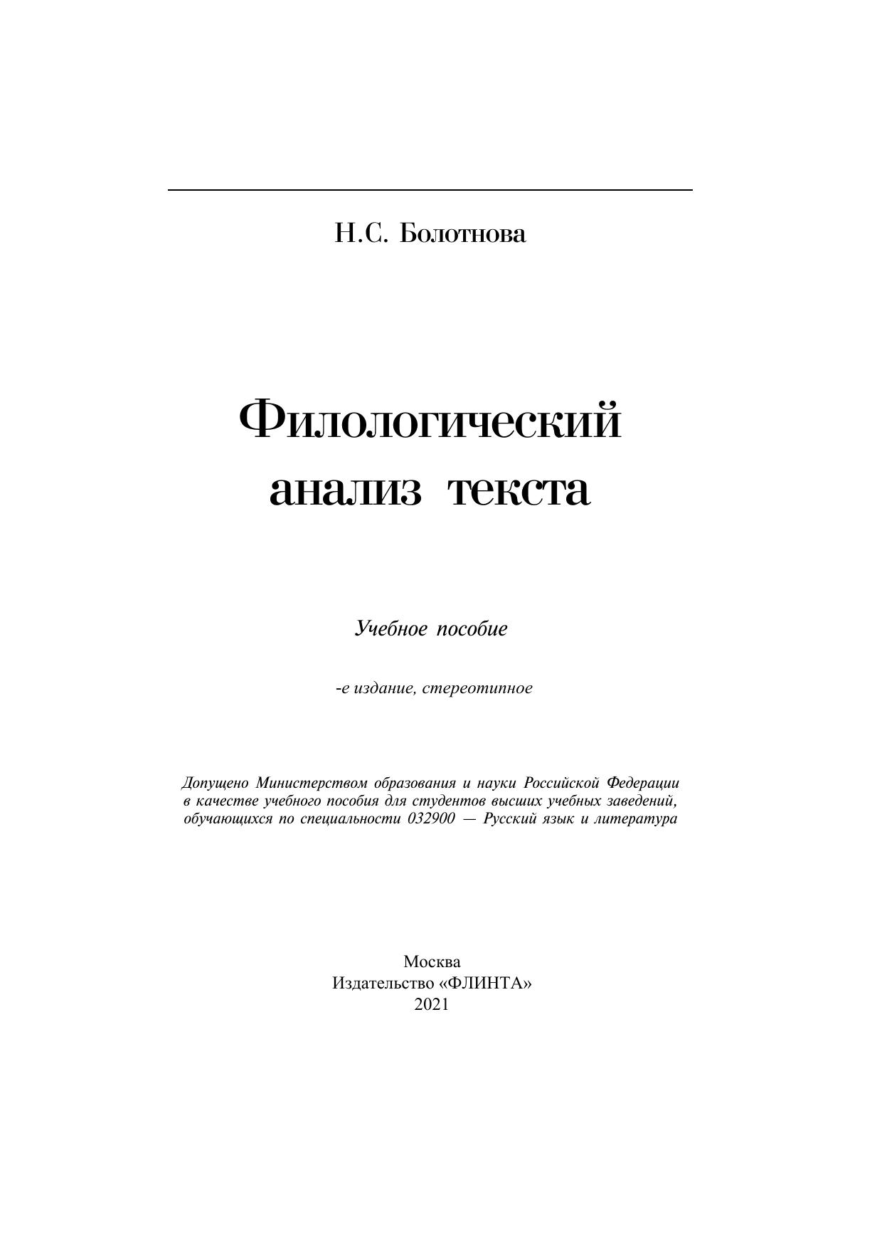 Основные понятия теории текста рассмотрены с позиций коммуникативной стилистики текста. Разные виды анализа текста представлены как важнейшие составляющие его комплексного филологического исследования с учетом культурно-исторического контекста эпохи. Книга содержит образцы анализа текстов разных типов, таблицы, схемы, контрольные вопросы, резюме.