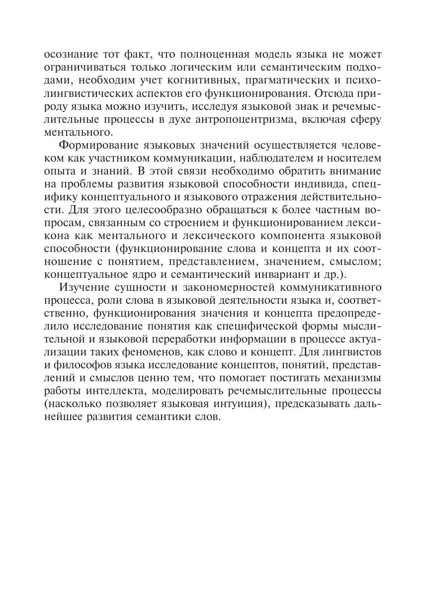 Предложенный в пособии комплексный анализ философской проблематики, связанный с исследованием слова, понятия и концепта в коммуникативной деятельности, позволил противопоставить традиционный подход к исследованию языка как самодостаточной знаковой системы и когнитивный подход, предполагающий вывод знания не из догматических стандартов рациональности, а из свойств познающего субъекта и практических контекстов его деятельности и общения. Описанный феноменологический анализ вносит определенный вклад в понимание проблем усвоения и продуцирования значений языковых выражений: он помогает вскрыть и описать те инвариантные языковые структуры, с помощью которых формируется и функционирует сознание человека.