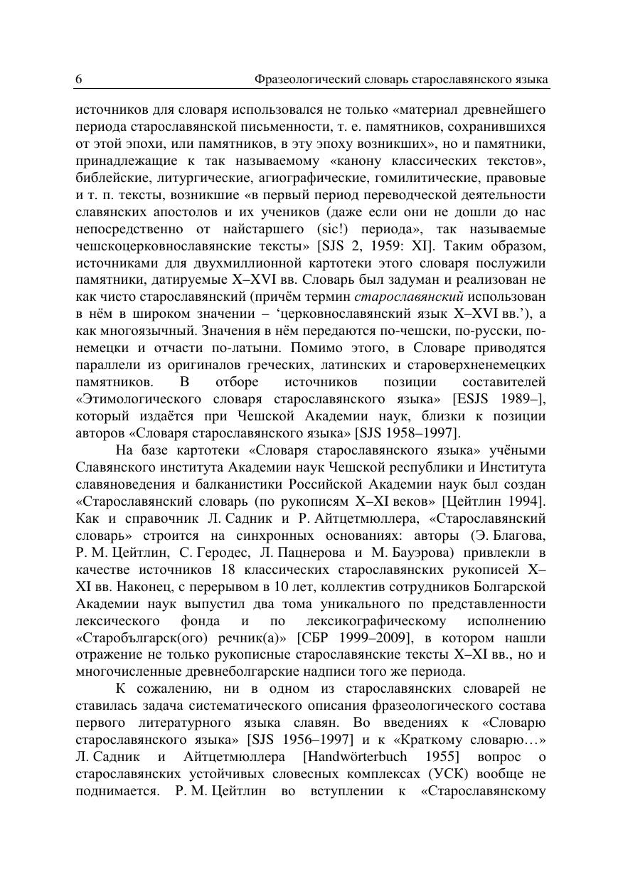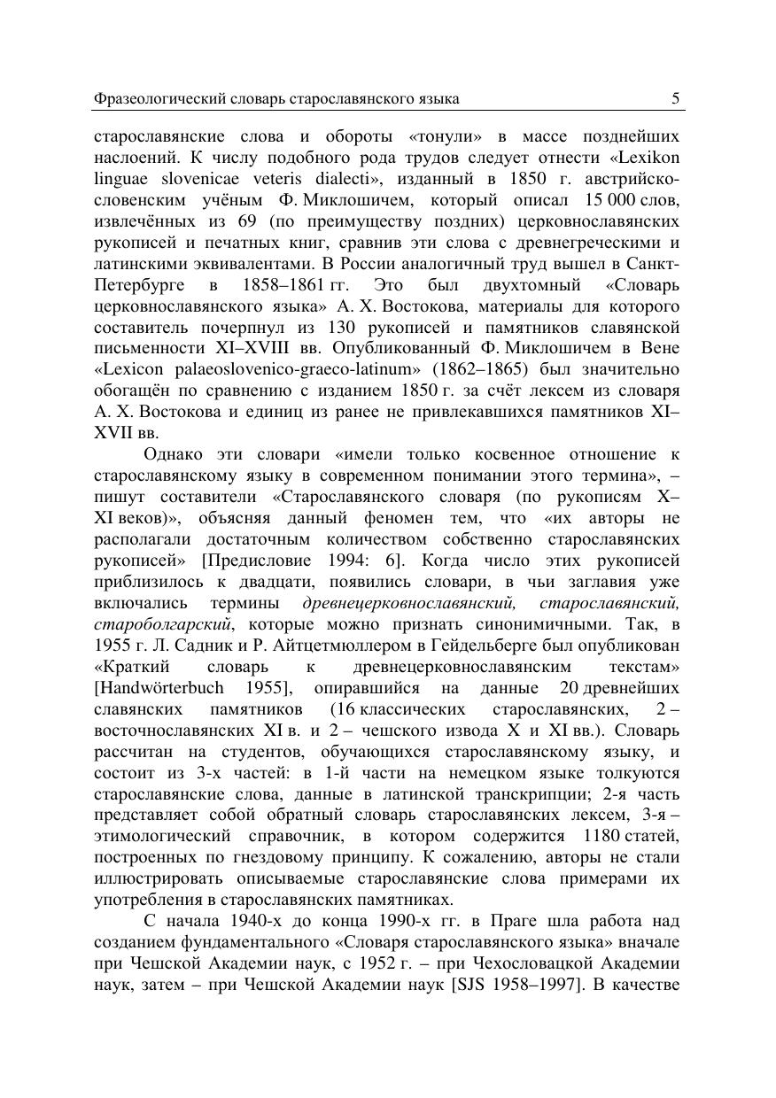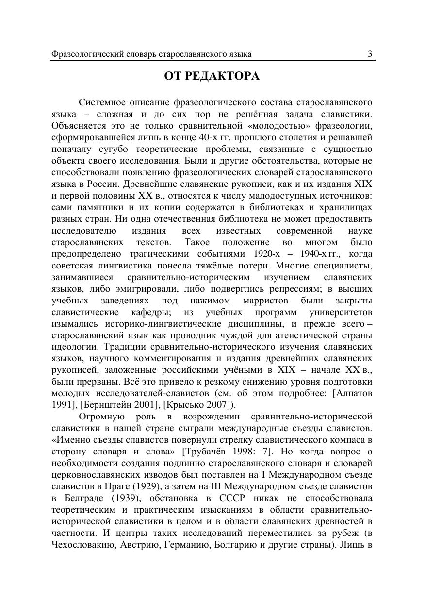 Книга представляет собой первый опыт фразеологического описания собственно старославянских сверхсловных языковых единиц. Источниками для него послужили древнейшие памятники славянской письменности, датируемые X-XI вв. Помимо семантической и иллюстративной зон, каждая словарная статья содержит сведения источниковедческого характера, при необходимости включает этимологическую или культуроведческую справку, обнаруженные в исследованных текстах синонимы или антонимы и завершается отсылками к различным словарям, позволяющим проследить судьбу анализируемой единицы.