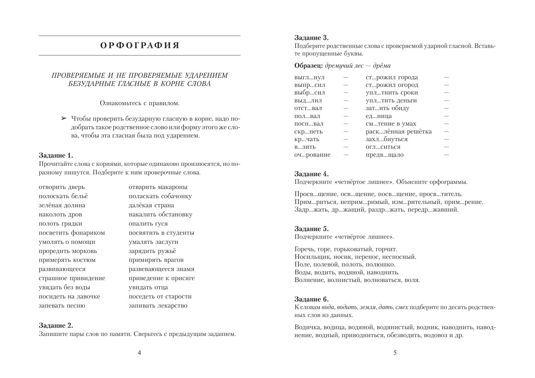 Пособие содержит материалы для повторения самых частотных орфограмм и пунктограмм. Оно позволяет систематизировать ранее полученные знания, повторить наиболее трудные правила, которые представлены в пособии в виде формул — опорных сигналов или логически построенных таблиц. Все основные правила отрабатываются в упражнениях. Четко структурированные задания готовят к выполнению экзаменационных тестов по русскому языку. В затруднительных случаях поможет орфографический словарь, данный в конце пособия. Для абитуриентов, студентов и преподавателей вузов, а также всех, кто стремится быть грамотным специалистом и грамотным человеком.