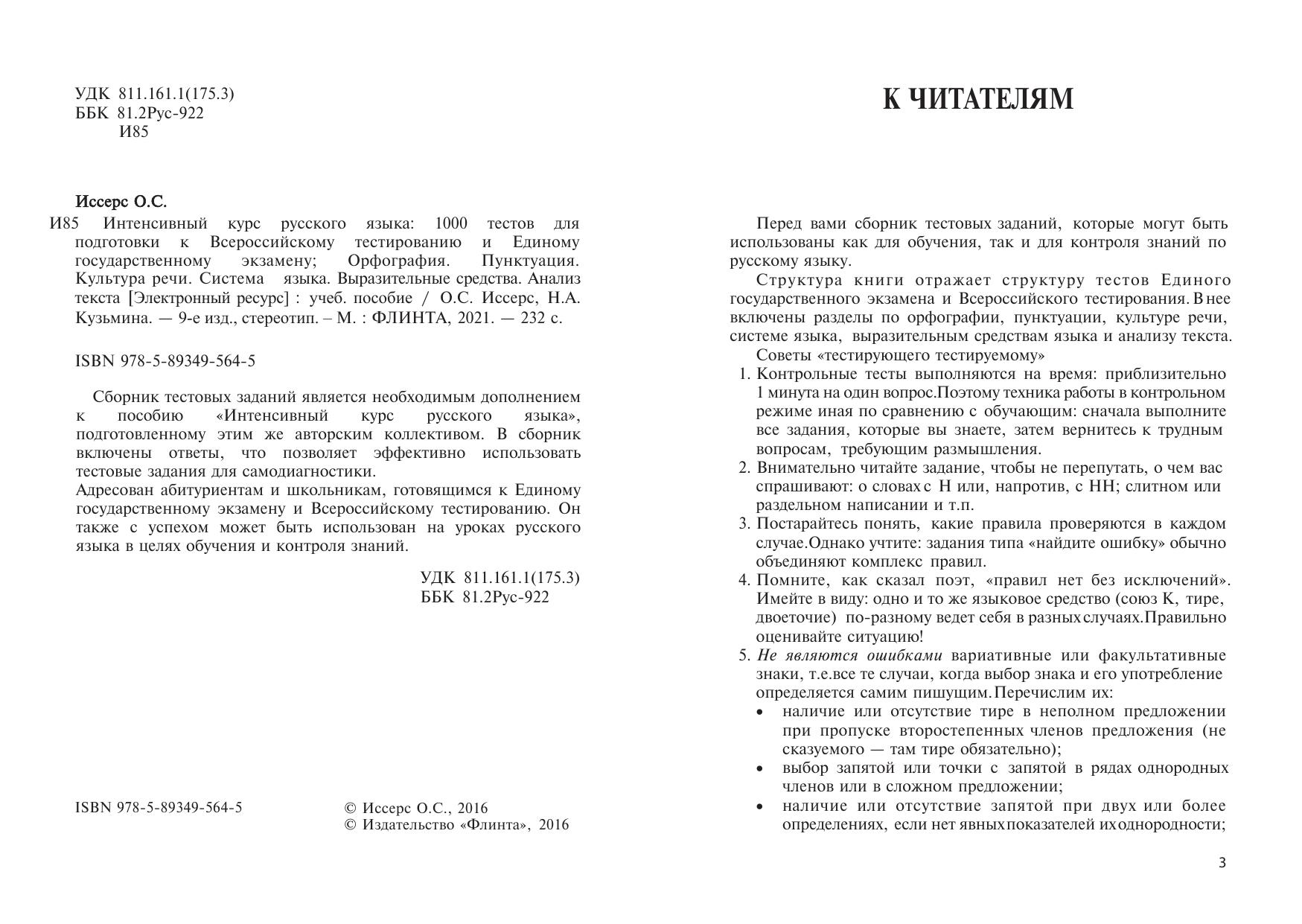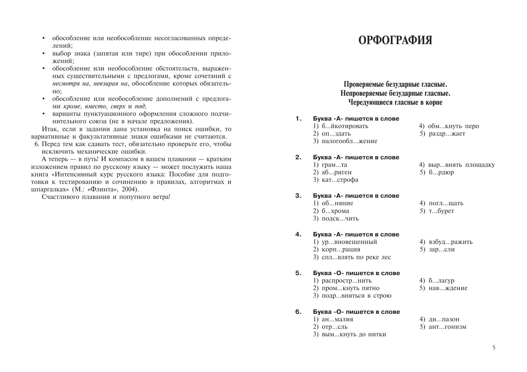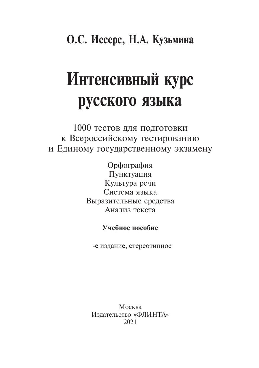 Интенсивный курс русского языка: 1000 тестов для подготовки к Всероссийскому тестированию и Единому государственному экзамену; Орфография. Пунктуация. Культура речи. Система языка. Выразительные средства. Анализ текста