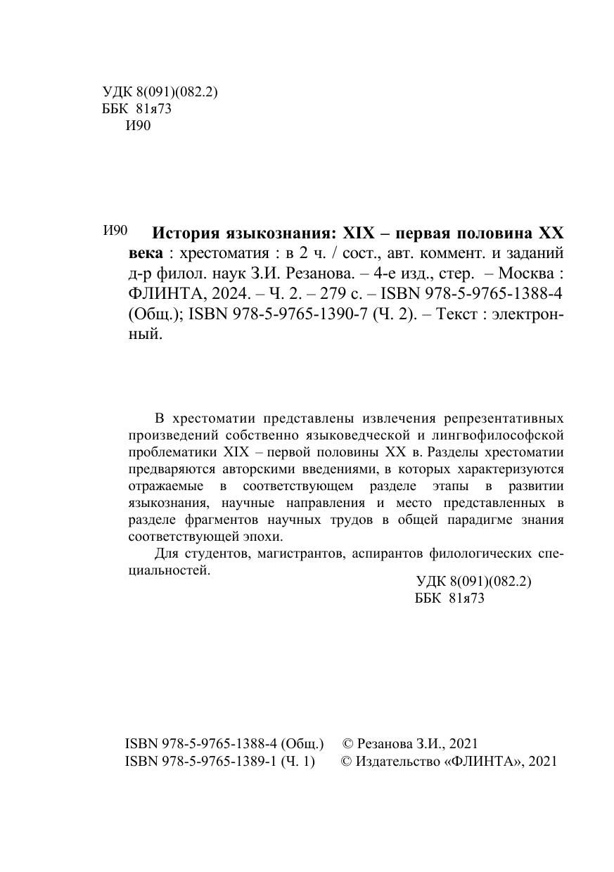 В хрестоматии представлены извлечения репрезентативных произведений собственно языковедческой и лингвофилософской проблематики ХIХ – первой половины ХХ в. Разделы хрестоматии пред-варяются авторскими введениями, в которых характеризуются отражаемые в соответствующем разделе этапы в развитии языкознания, научные направления и место представленных в разделе фрагментов научных трудов в общей парадигме знания соответствующей эпохи.