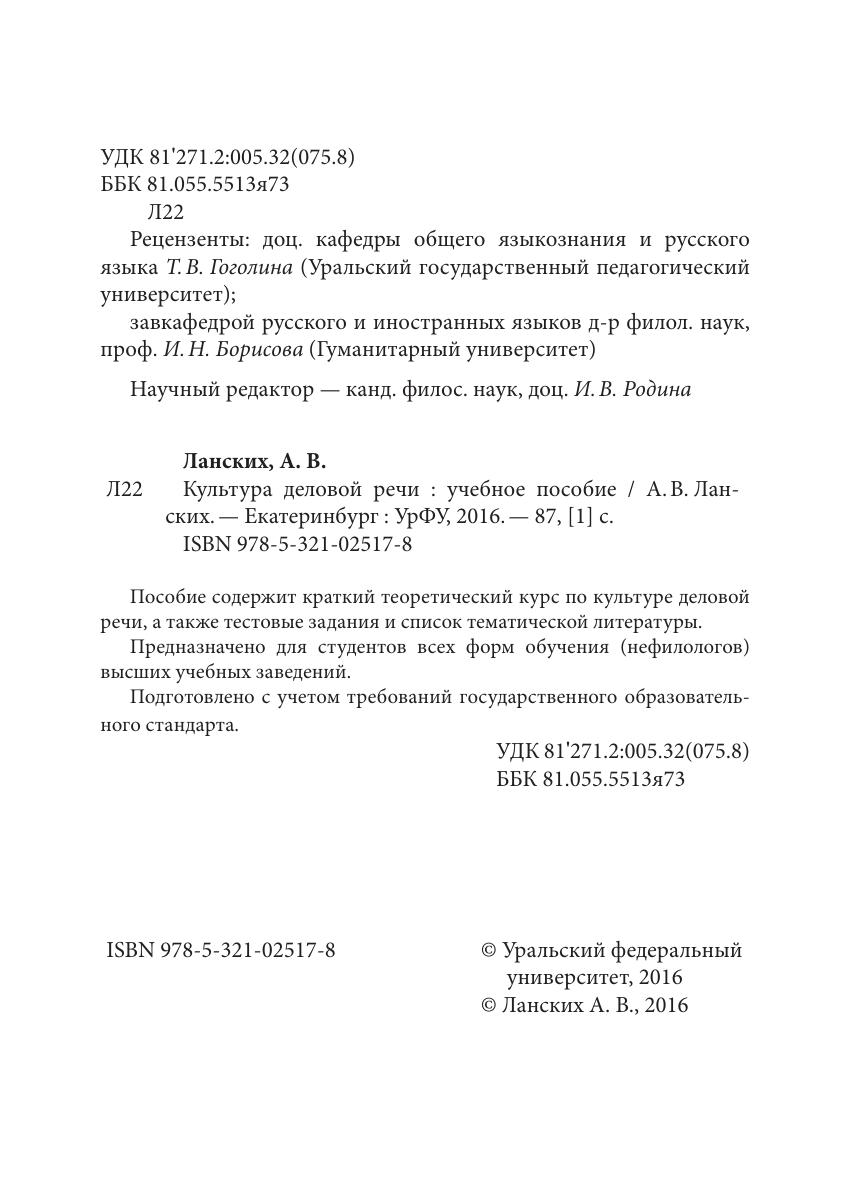Пособие содержит краткий теоретический курс по культуре деловой речи, а также тестовые задания и список тематической литературы. Предназначено для студентов всех форм обучения (нефилологов) высших учебных заведений.