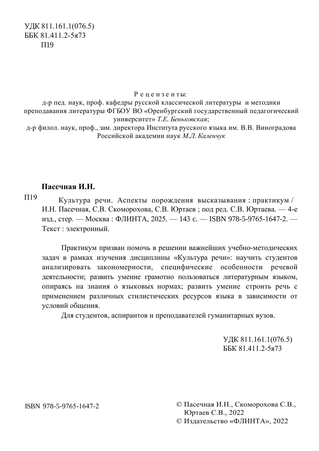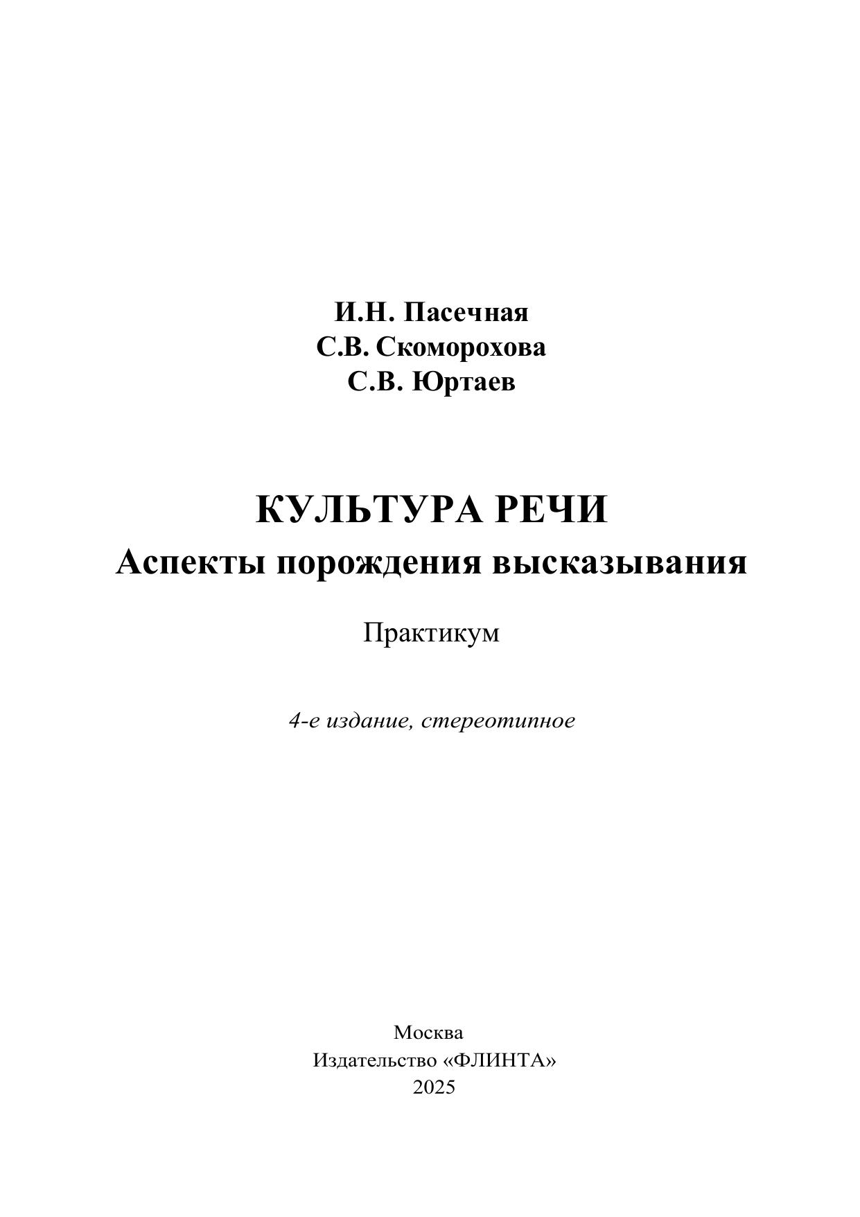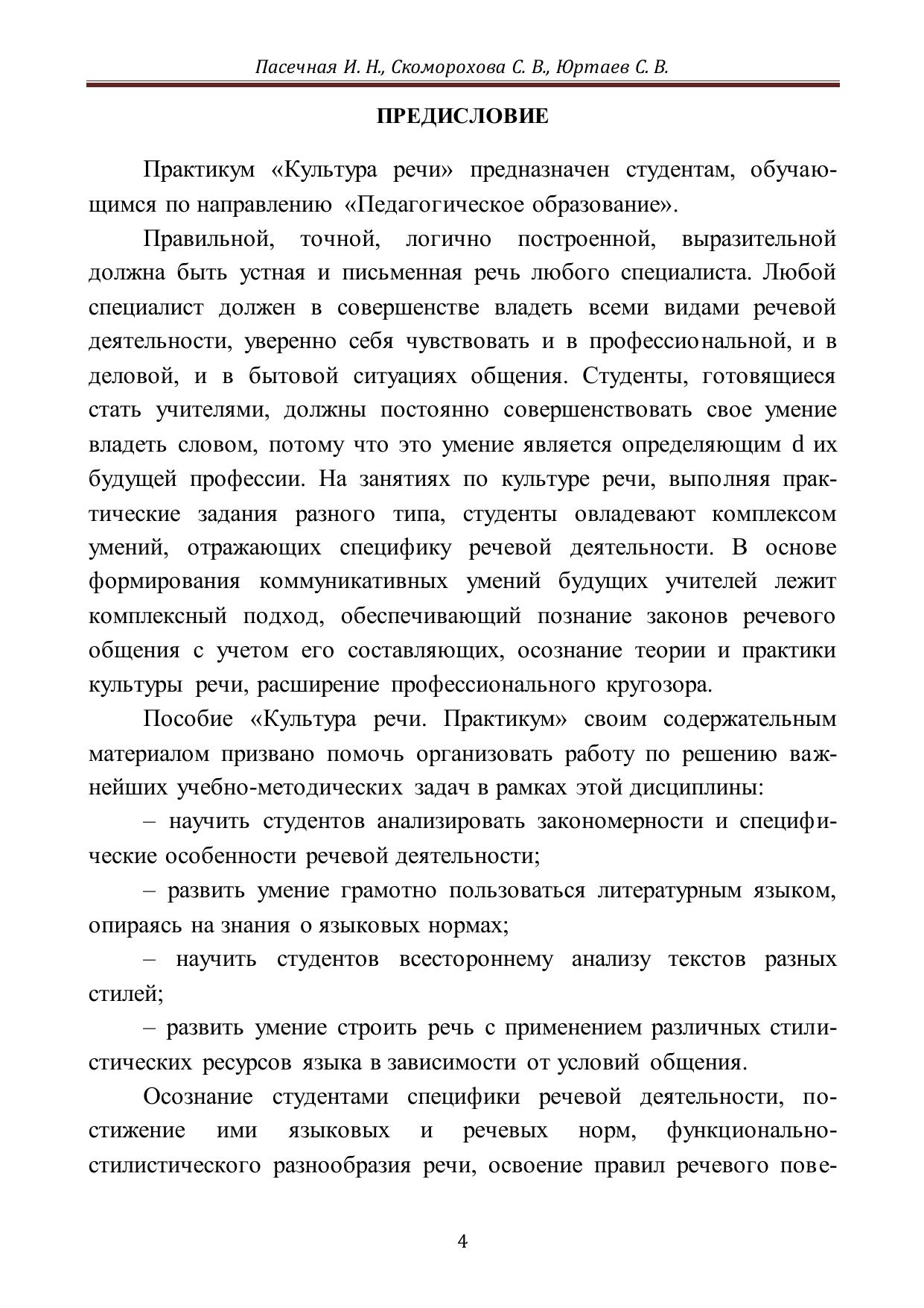 Культура речи (аспекты порождения высказывания): практикум Пасечная И. Н., Скоморохова С. В., Юртаев С. В.