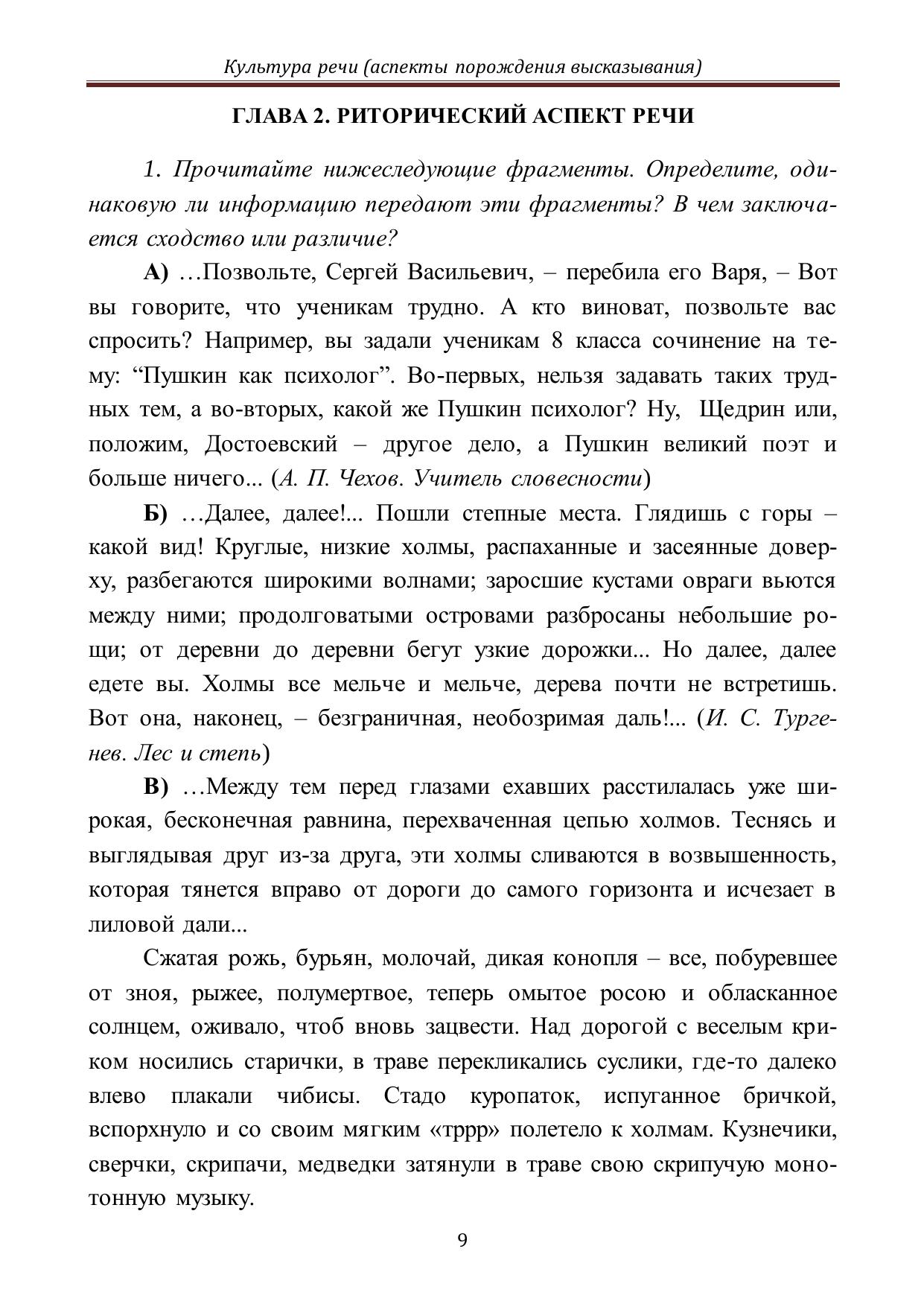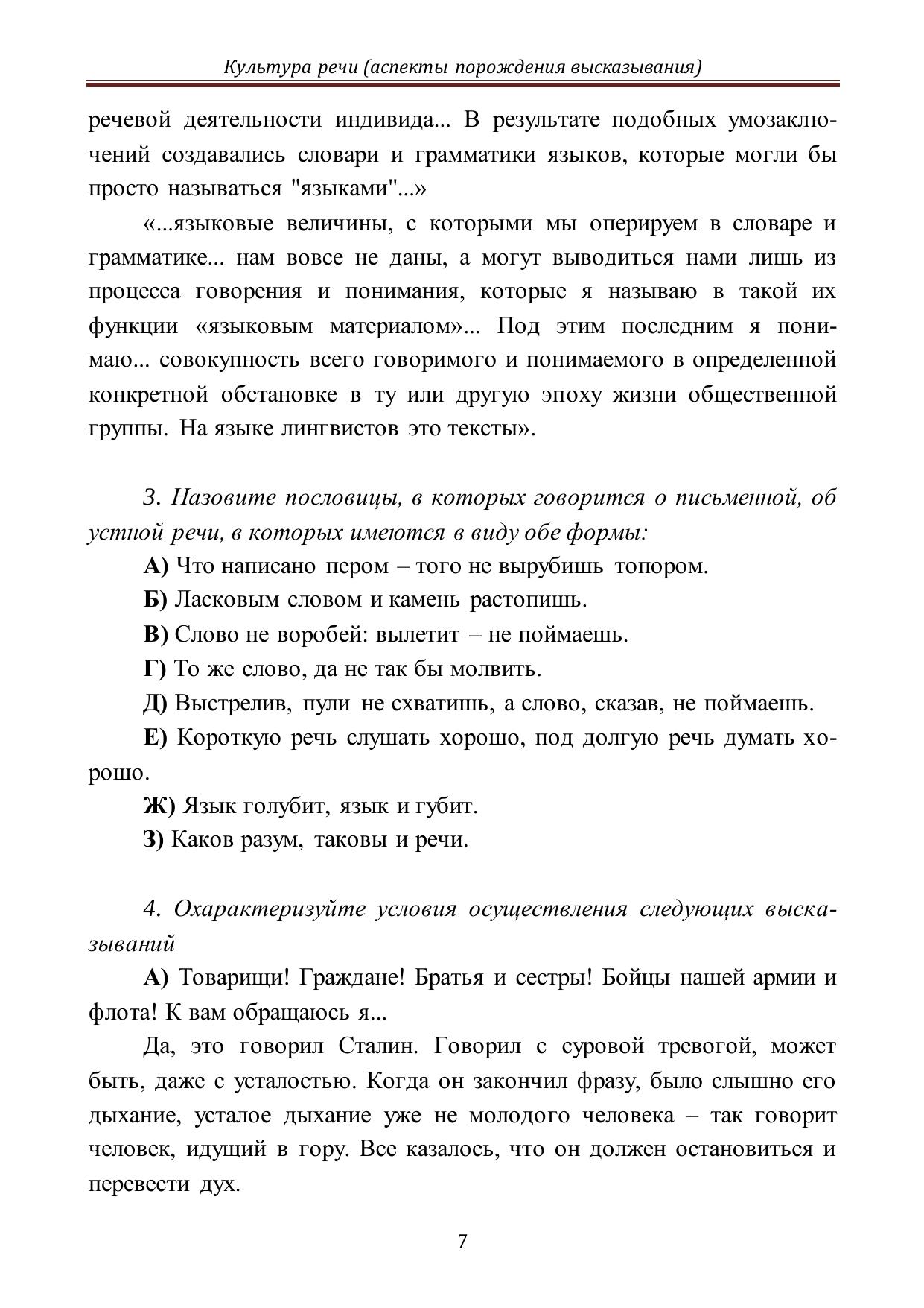 Культура речи (аспекты порождения высказывания): практикум