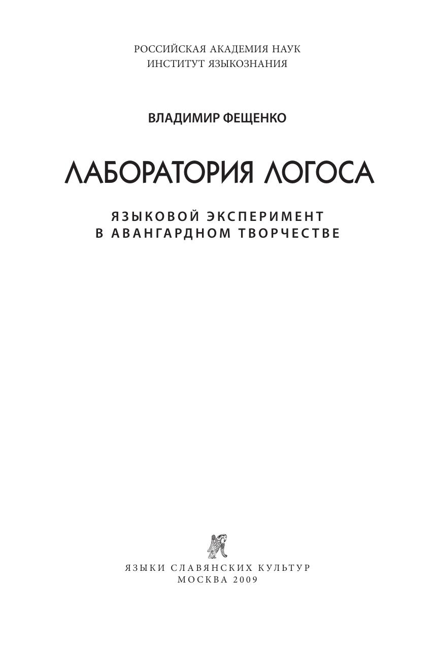Лаборатория логоса: Языковой эксперимент в авангардном творчестве