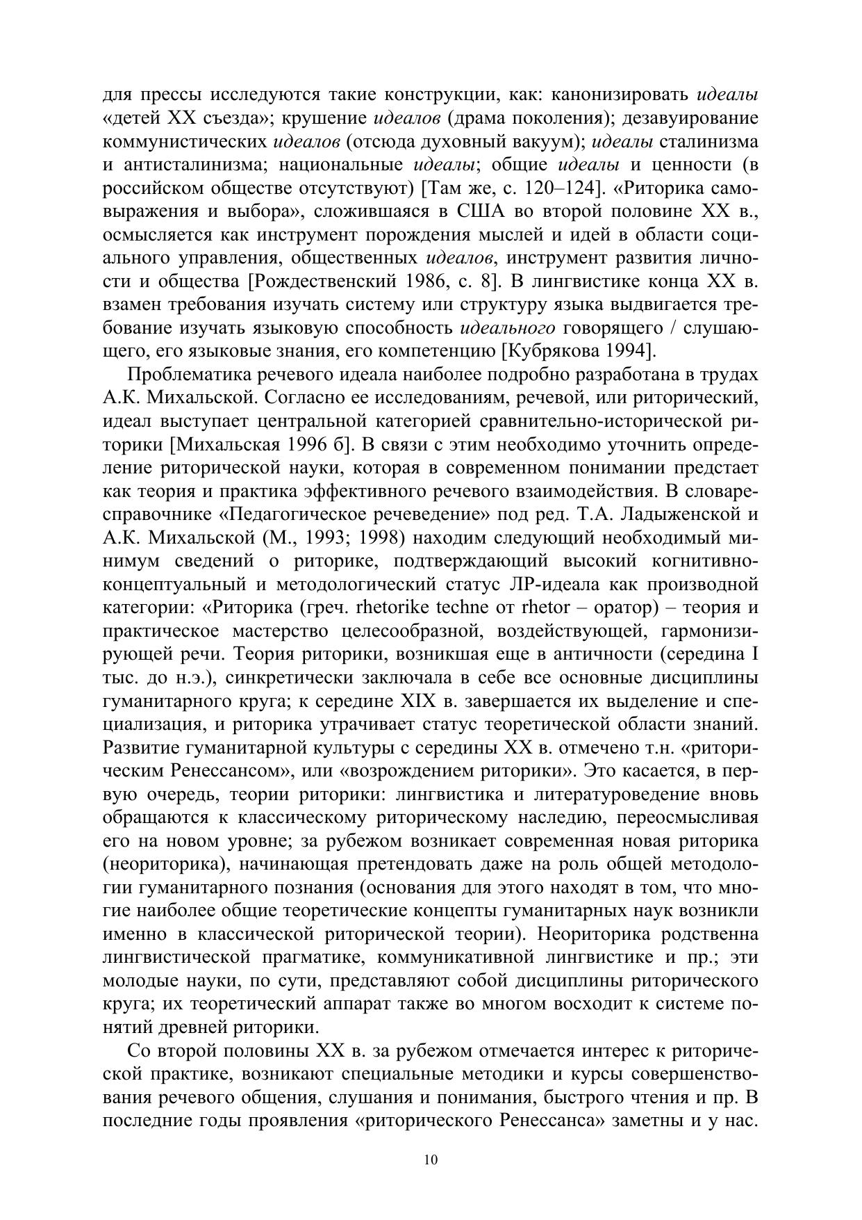 Лингвориторический идеал как фактор становления профессиональной языковой личности будущего учителя