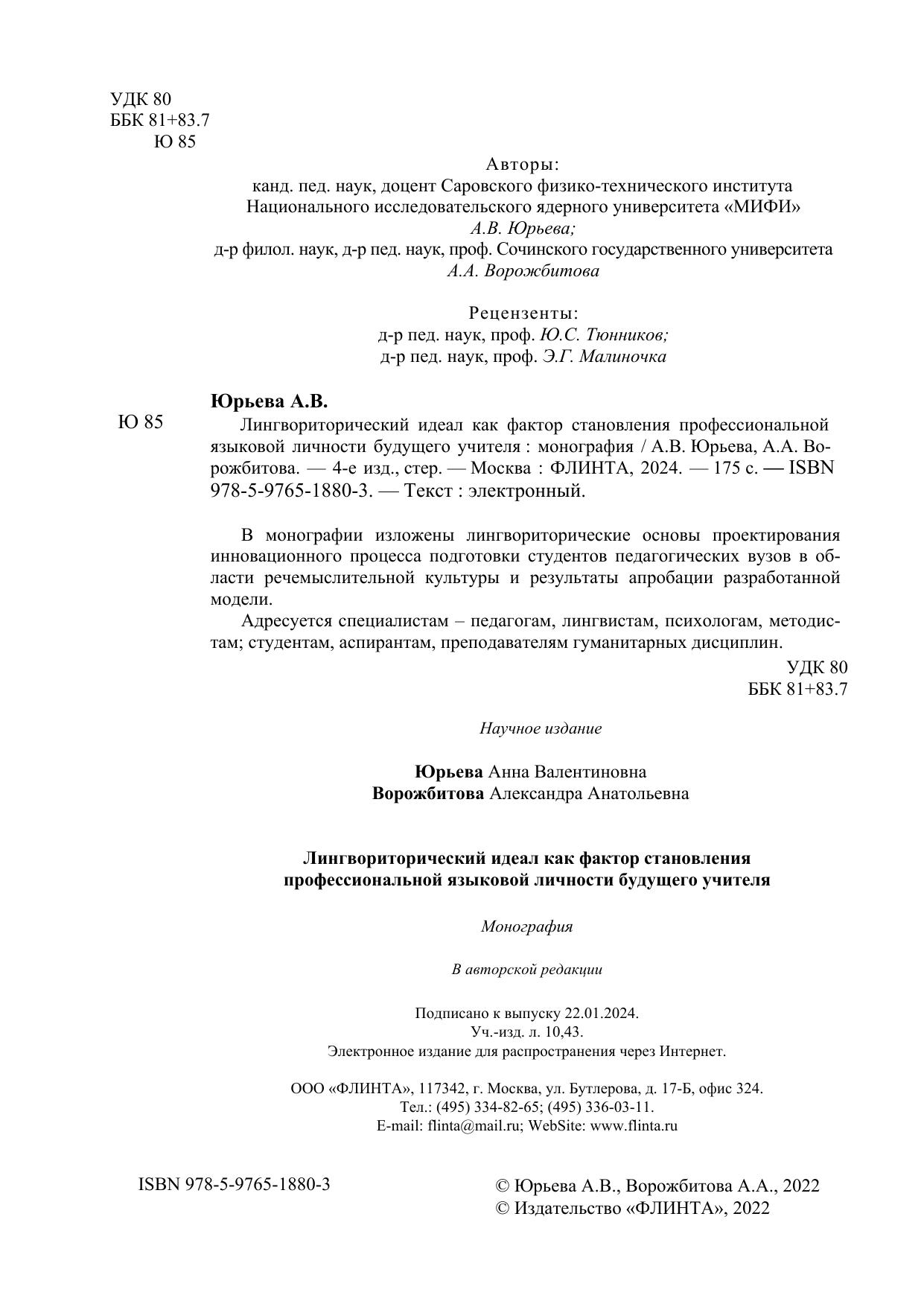 Авторы: Юрьева А. В., Ворожбитова А. А.