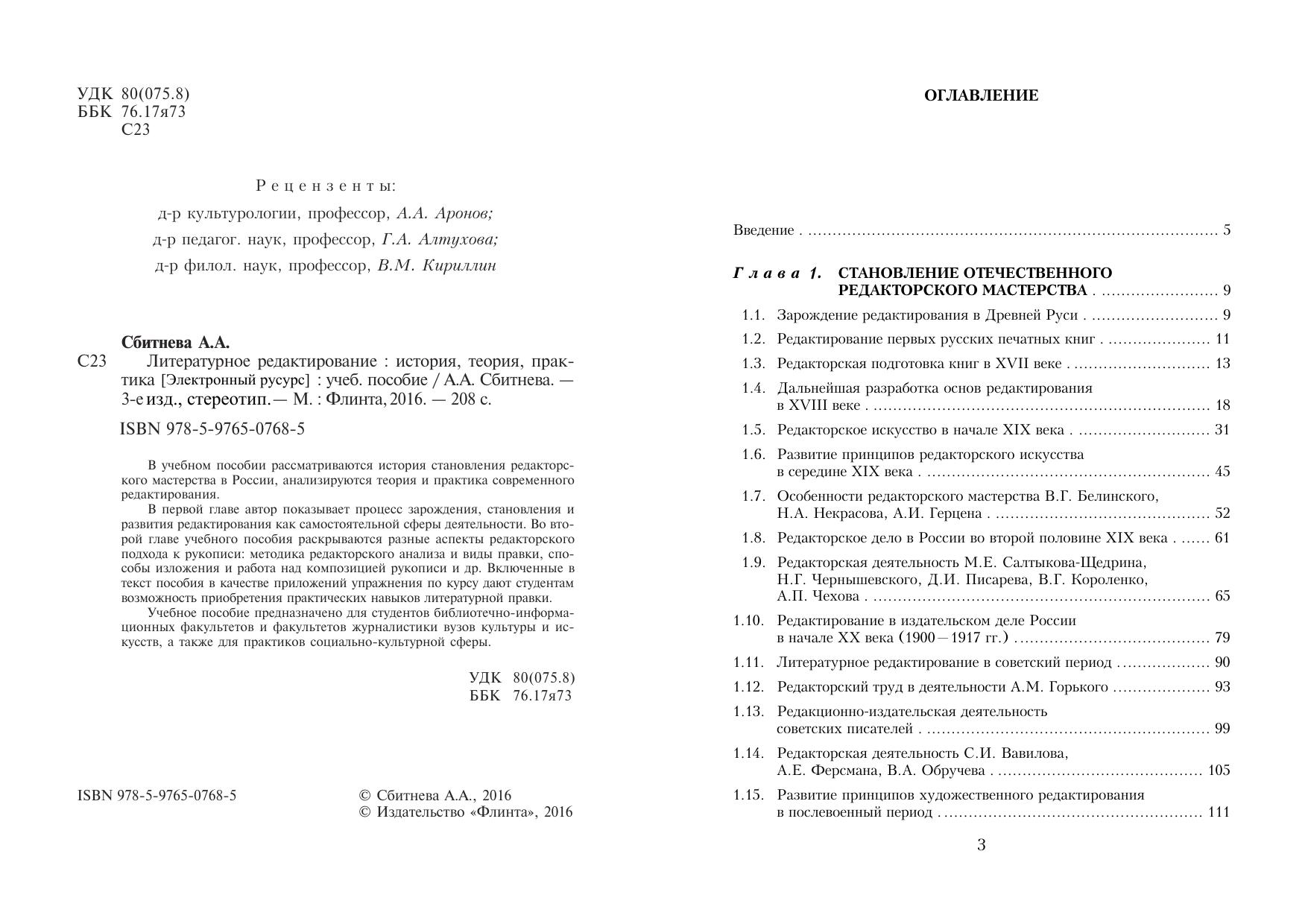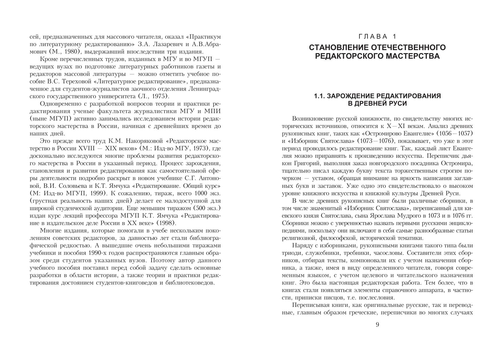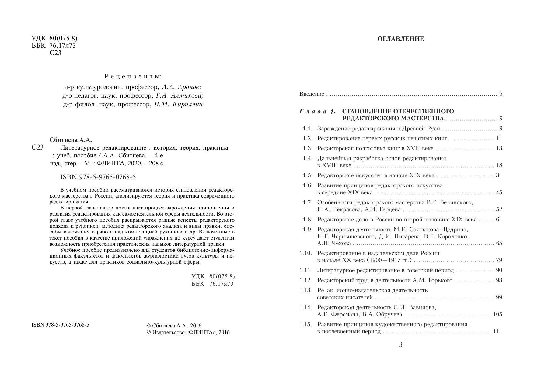 В учебном пособии рассматриваются история становления редакторского мастерства в России, анализируются теория и практика современного редактирования. В первой главе автор показывает процесс зарождения, становления и развития редактирования как самостоятельной сферы деятельности. Во второй главе учебного пособия раскрываются разные аспекты редакторского подхода к рукописи: методика редакторского анализа и виды правки, способы изложения и работа над композицией рукописи и др. Включенные в текст пособия в качестве приложений упражнения по курсу дают студентам возможность приобретения практических навыков литературной правки. Учебное пособие предназначено для студентов библиотечно-информационных факультетов и факультетов журналистики вузов культуры и искусств, а также для практиков социально-культурной сферы.