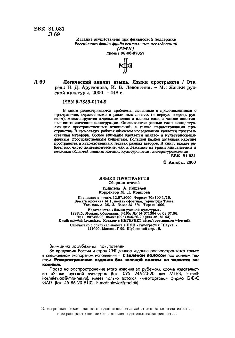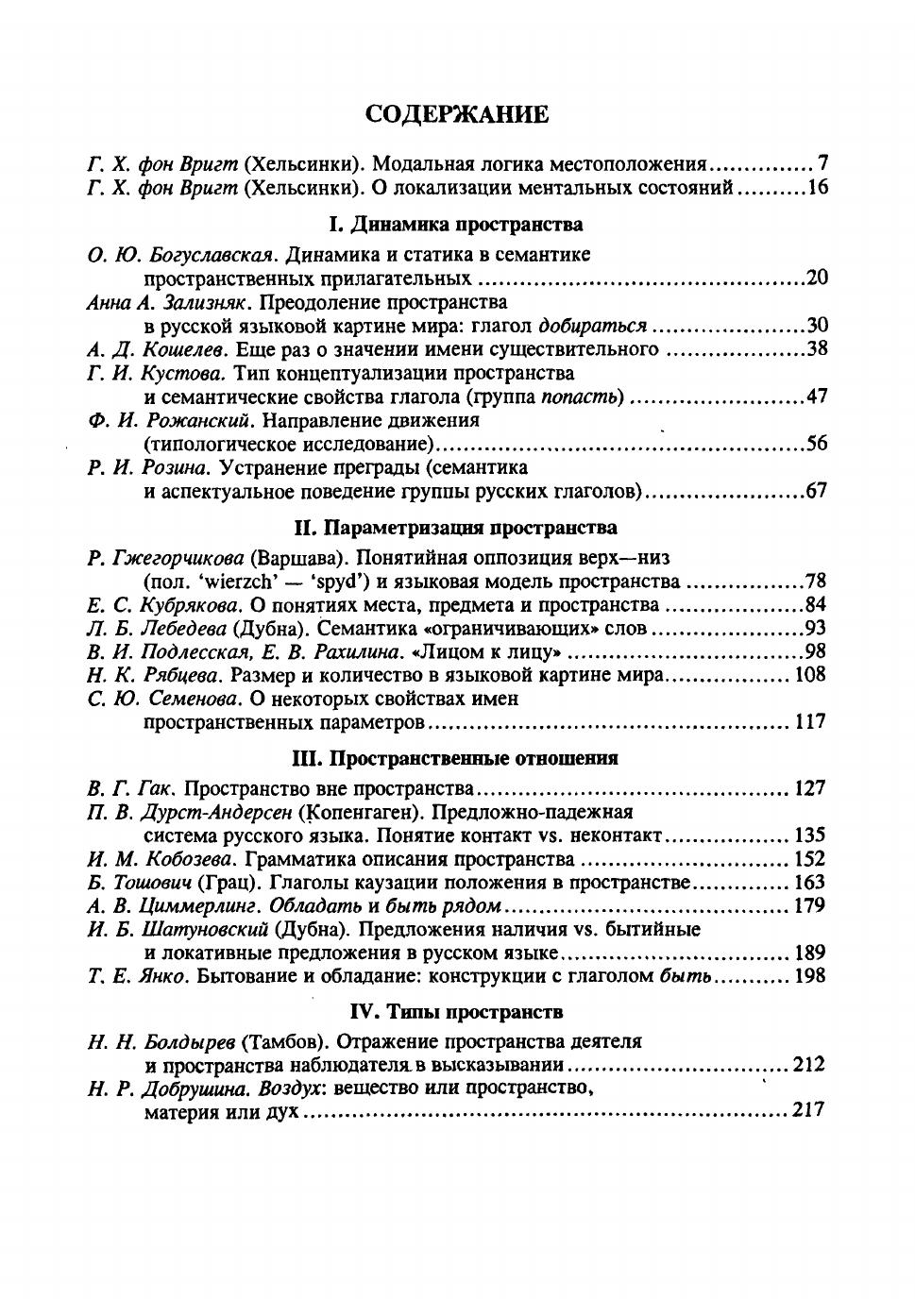 В книге рассматриваются проблемы, связанные с представлениями о пространстве, отраженными в различных языках (в первую очередь русском). Анализируются отдельные слова и классы слов, а также локативные синтаксические конструкции. Описываются разные типы концептуализации пространственных отношений, а также параметризация пространства. В нескольких работах объектом исследования является пространственная метафора. Особое внимание уделяется лингво- и культурноспецифичным пространственным концептам. Большой раздел посвящен картине пространства в художественных текстах разных авторов. В книгу входят работы как чисто лингвистические, так и лежащие на грани лингвистики и смежных областей знания: логики, культурологии, литературоведения.