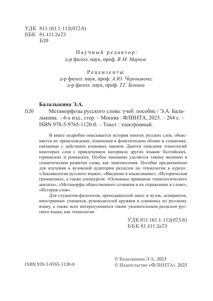 Для студентов-филологов, преподавателей школ и вузов, аспирантов, иностранных учащихся, руководителей кружков и олимпиад по русскому языку, а также всех интересующихся таким увлекательным разделом рус- ского языка, как этимология.