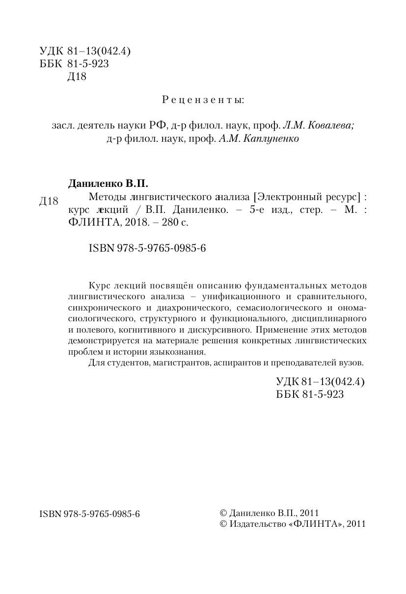 Курс лекций посвящён описанию фундаментальных методов лингвистического анализа – унификационного и сравнительного, синхронического и диахронического, семасиологического и ономасиологического, структурного и функционального, дисциплинарного и полевого, когнитивного и дискурсивного. Применение этих методов демонстрируется на материале решения конкретных лингвистических проблем и истории языкознания. Для студентов, магистрантов, аспирантов и преподавателей вузов.
