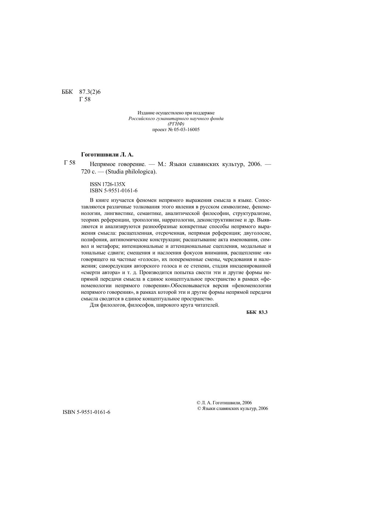 В книге изучается феномен непрямого выражения смысла в языке. Сопоставляются различные толкования этого явления в русском символизме, феноменологии, лингвистике, семантике, аналитической философии, структурализме, теориях референции, тропологии, нарратологии, деконструктивизме и др. Выявляются и анализируются разнообразные конкретные способы непрямого выражения смысла: расщепленная, отсроченная, непрямая референция, двуголосие, полифония, антиномические конструкции, расшатывание акта именования, символ и метафора, интенциональные и аттенциональные сцепления, модальные и тональные сдвиги, смещения и наслоения фокусов внимания, расщепление "я" говорящего на частные "голоса", их попеременные смены, чередования и наложения, саморедукция авторского голоса и ее степени, стадия инсценированной "смерти автора" и т. д. Обосновывается версия "феноменологии непрямого говорения", в рамках которой эти и другие формы непрямой передачи смысла сводятся в единое концептуальное пространство. Для филологов, философов, широкого круга читателей.