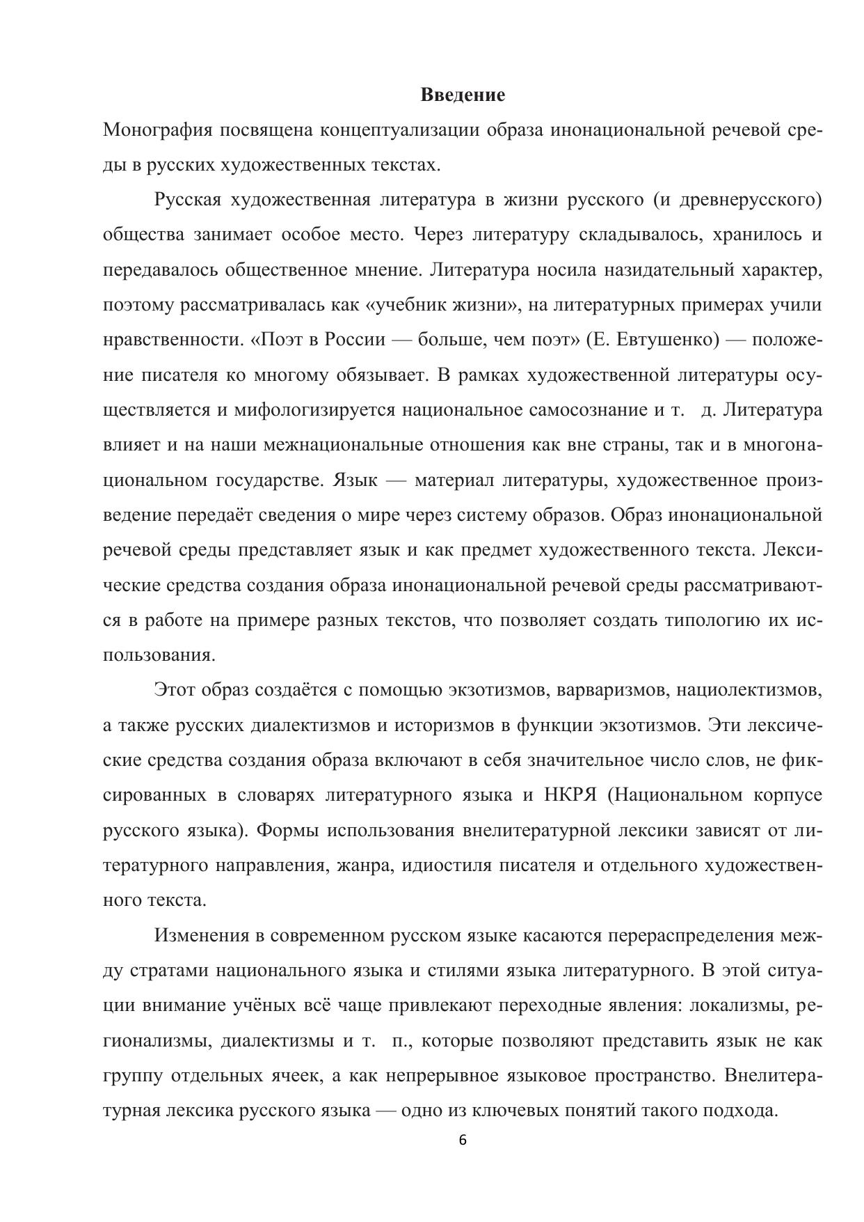 Монография представляет собой глубокое исследование образа инонациональной речевой среды. Проблемы, решаются в связи с насущной потребностью в дальнейшей разработке теории различных сфер языковой коммуникации, условий создания образа инонациональной языковой личности в русской речевой среде, новых направлений исследования пространства художественного текста. Монография важна в настоящее время, когда встаёт вопрос воспитания уважения к чужим культурам. Работа основана на изучении и обобщении ранее не разработанного фактического языкового материала, представляющего инонациональную речевую среду в художественных текстах, созданы картотека и словари. Монография вносит серьёзный вклад в развитие общей теории идиостиля и теории стратификации литературного и национального языков.