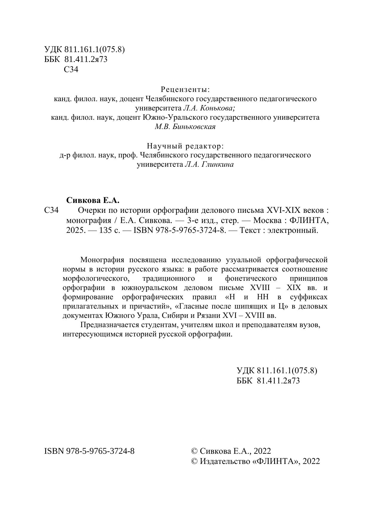 Монография посвящена исследованию узуальной орфографической нормы в истории русского языка: в работе рассматривается соотношение морфологического, традиционного и фонетического принципов орфографии в южноуральском деловом письме XVIII – XIX вв. и формирование орфографических правил «Н и НН в суффиксах прилагательных и причастий», «Гласные после шипящих и Ц» в деловых документах Южного Урала, Сибири и Рязани XVI – XVIII вв. Предназначается студентам, учителям школ и преподавателям вузов, интересующимся историей русской орфографии.