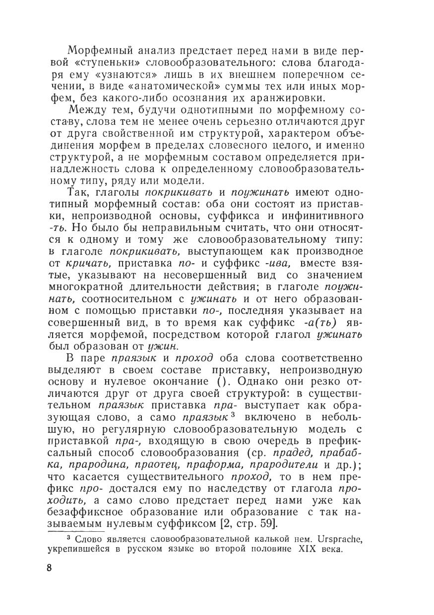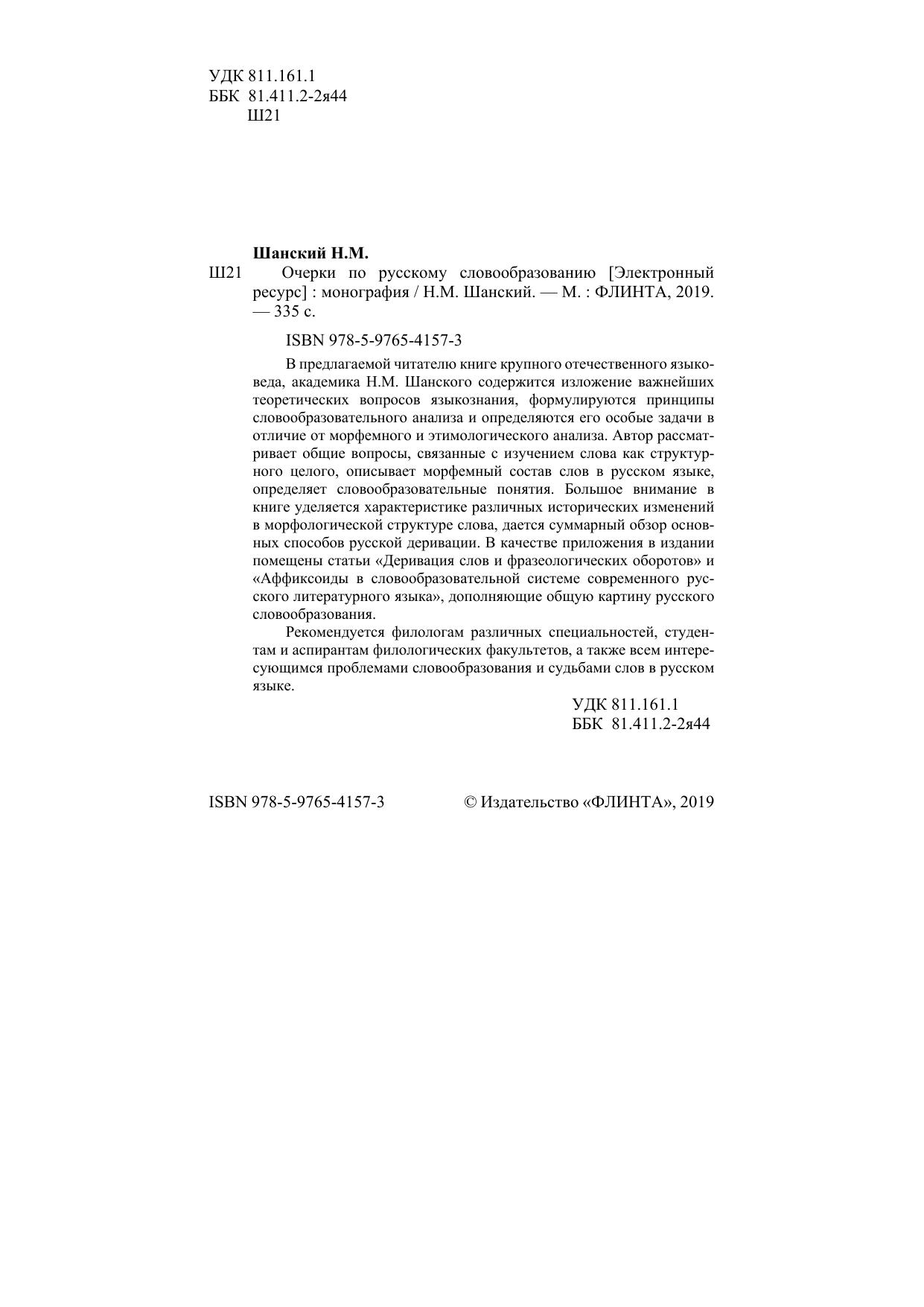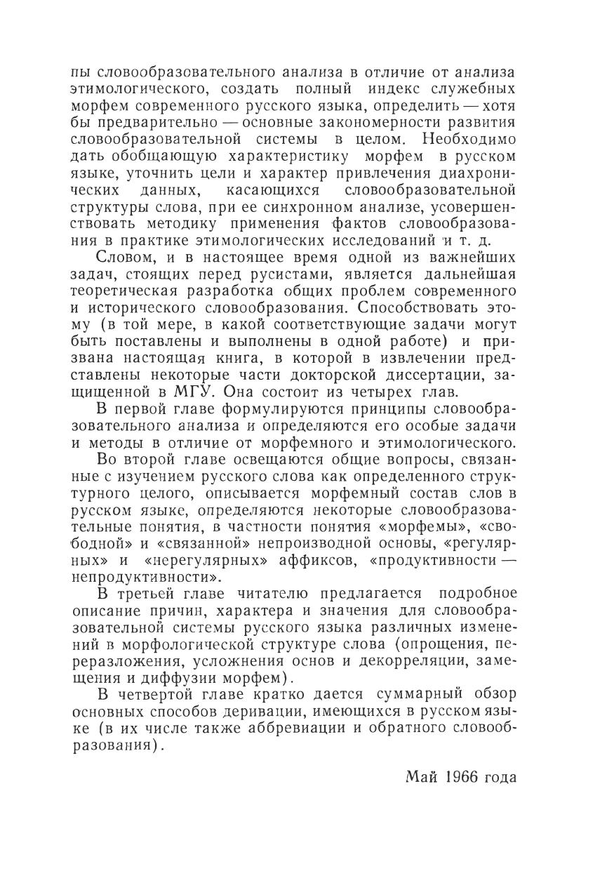В предлагаемой читателю книге крупного отечественного языковеда, академика Н.М. Шанского содержится изложение важнейших теоретических вопросов языкознания, формулируются принципы словообразовательного анализа и определяются его особые задачи в отличие от морфемного и этимологического анализа. Автор рассматривает общие вопросы, связанные с изучением слова как структурного целого, описывает морфемный состав слов в русском языке, определяет словообразовательные понятия. Большое внимание в книге уделяется характеристике различных исторических изменений в морфологической структуре слова, дается суммарный обзор основных способов русской деривации. В качестве приложения в издании помещены статьи «Деривация слов и фразеологических оборотов» и «Аффиксоиды в словообразовательной системе современного русского литературного языка», дополняющие общую картину русского словообразования.