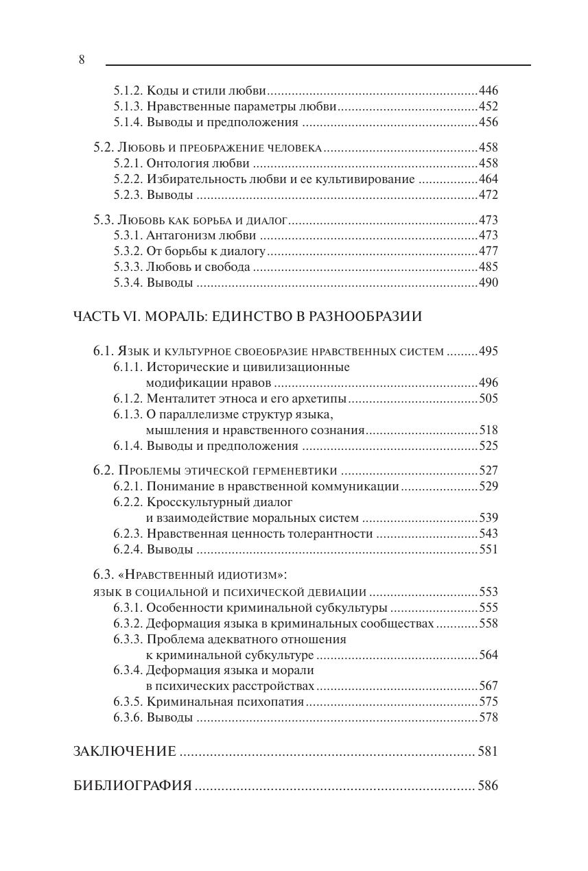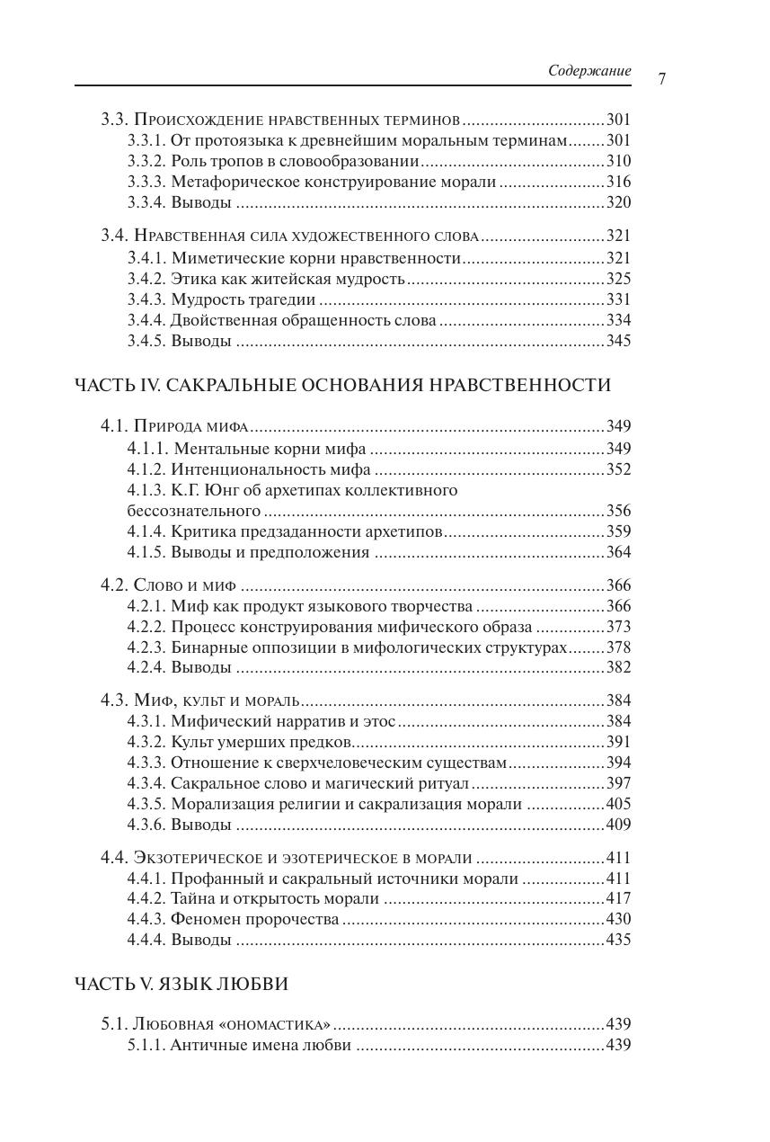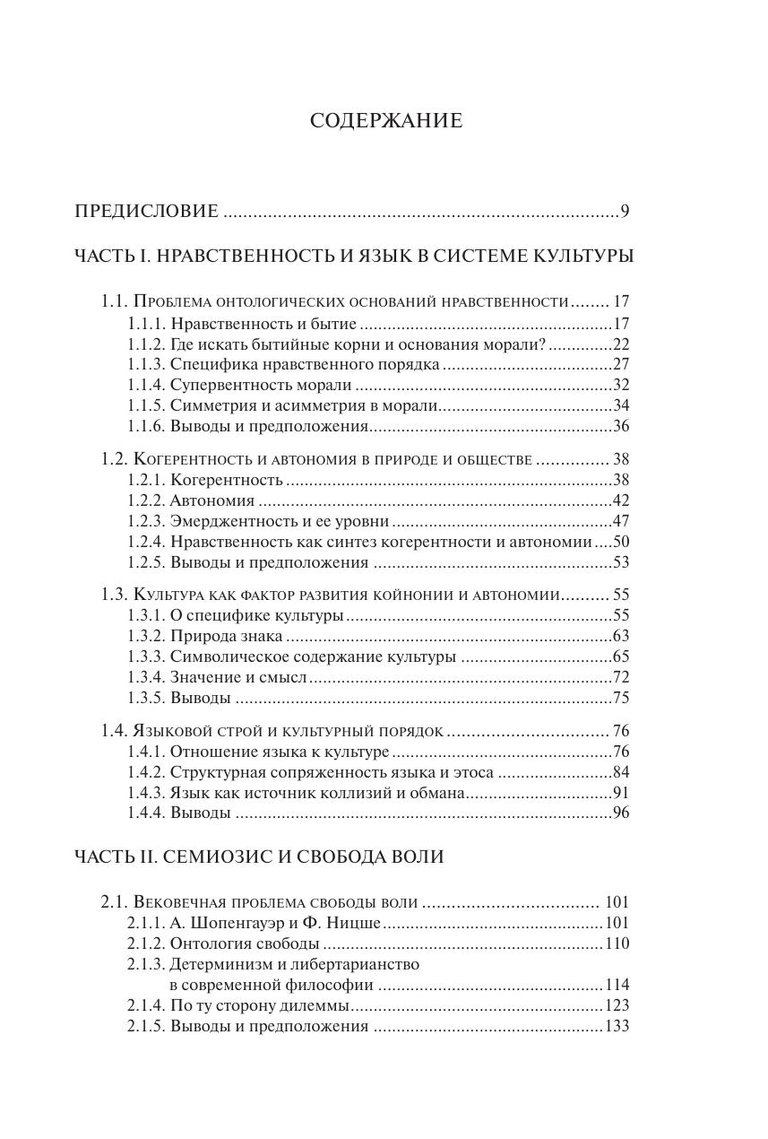 В данной монографии мораль рассмотрена как продукт онтологических тенденций к объединению отдельных систем и их автономии. Содержание морали конструируется в синтезе языковых и неязыковых аспектов. Решающая роль в формировании морали принадлежит языку. Язык как знаковая система лежит в основе свободы воли – способности активно вмешиваться в ход природных и ментальных процессов. На языковом материале строится нормативная детерминация, которая превращает человека в ответственного морального субъекта. Лингвистические тропы – метонимия и метафора – позволяют устанавливать искусственную связь между различными сторонами бытия и особый порядок отношений между людьми («этос»). Центральной метафорой, заложенной в фундамент морали, является «золотая середина» между избытком и недостатком. Моральный порядок складывается в диалоге между людьми и обосновывается различными нарративами, которые координируются друг с другом и связывают отдельные жизненные эпизоды в относительно цельную систему. Формирование нормативного порядка (этогенез») является процессом интеграции поведенческих стратегий и механизмов в сложную сеть, исходными узлами которой выступают негодование, вина, чувство собственного достоинства и любовь. Нравственному значению любви в монографии отведено особое место. Условием успешного включения в нормативный порядок служит этическая