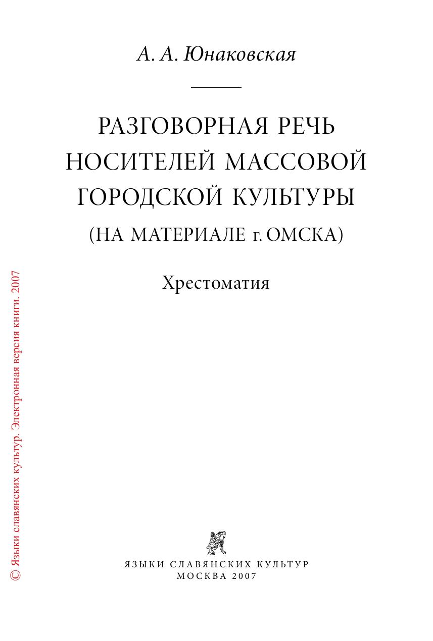 Разговорная речь носителей массовой городской культуры (на материале г. Омска)