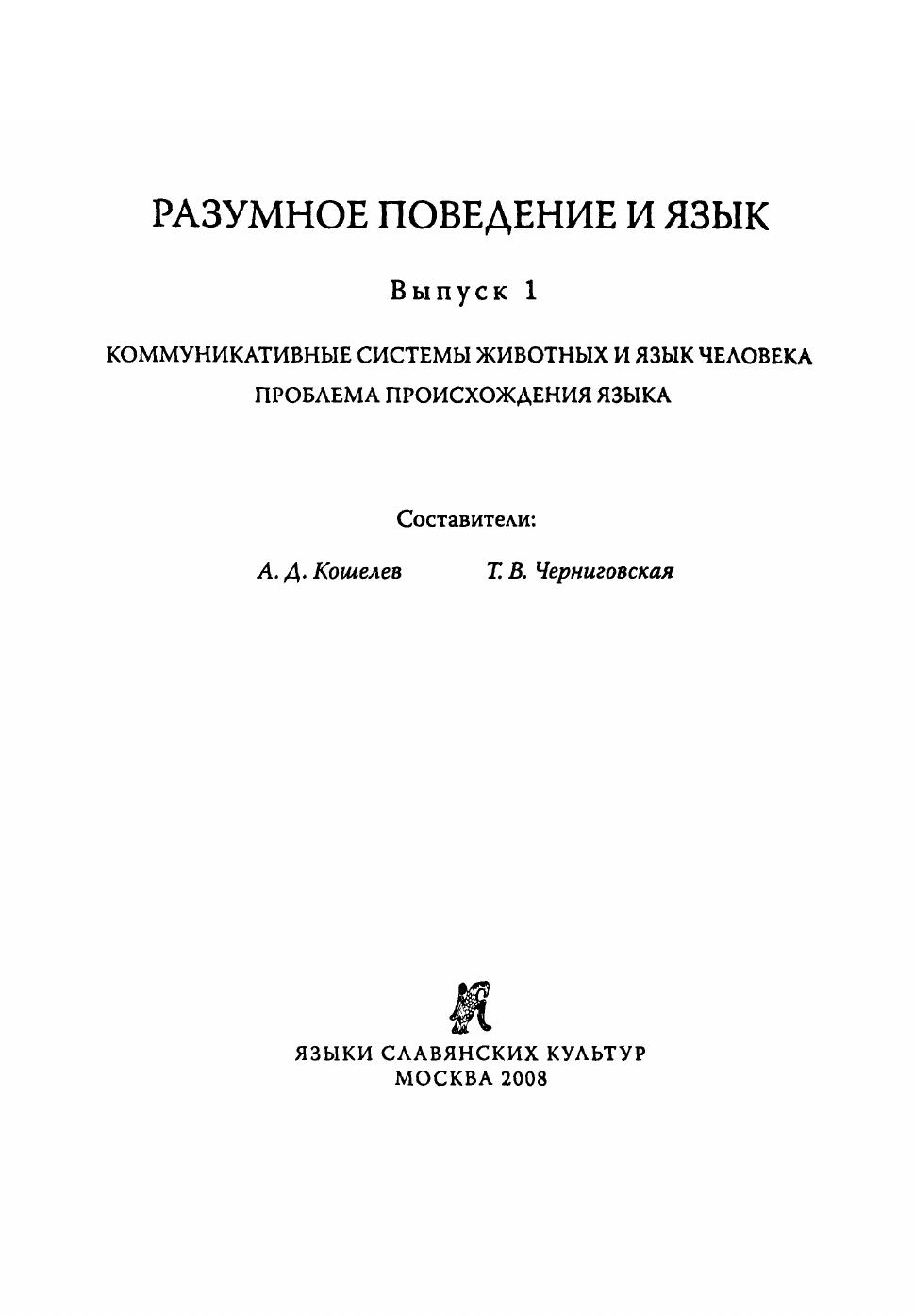 Разумное поведение и язык. Вып. 1. Коммуникативные системы животных и язык человека. Проблема происхождения языка