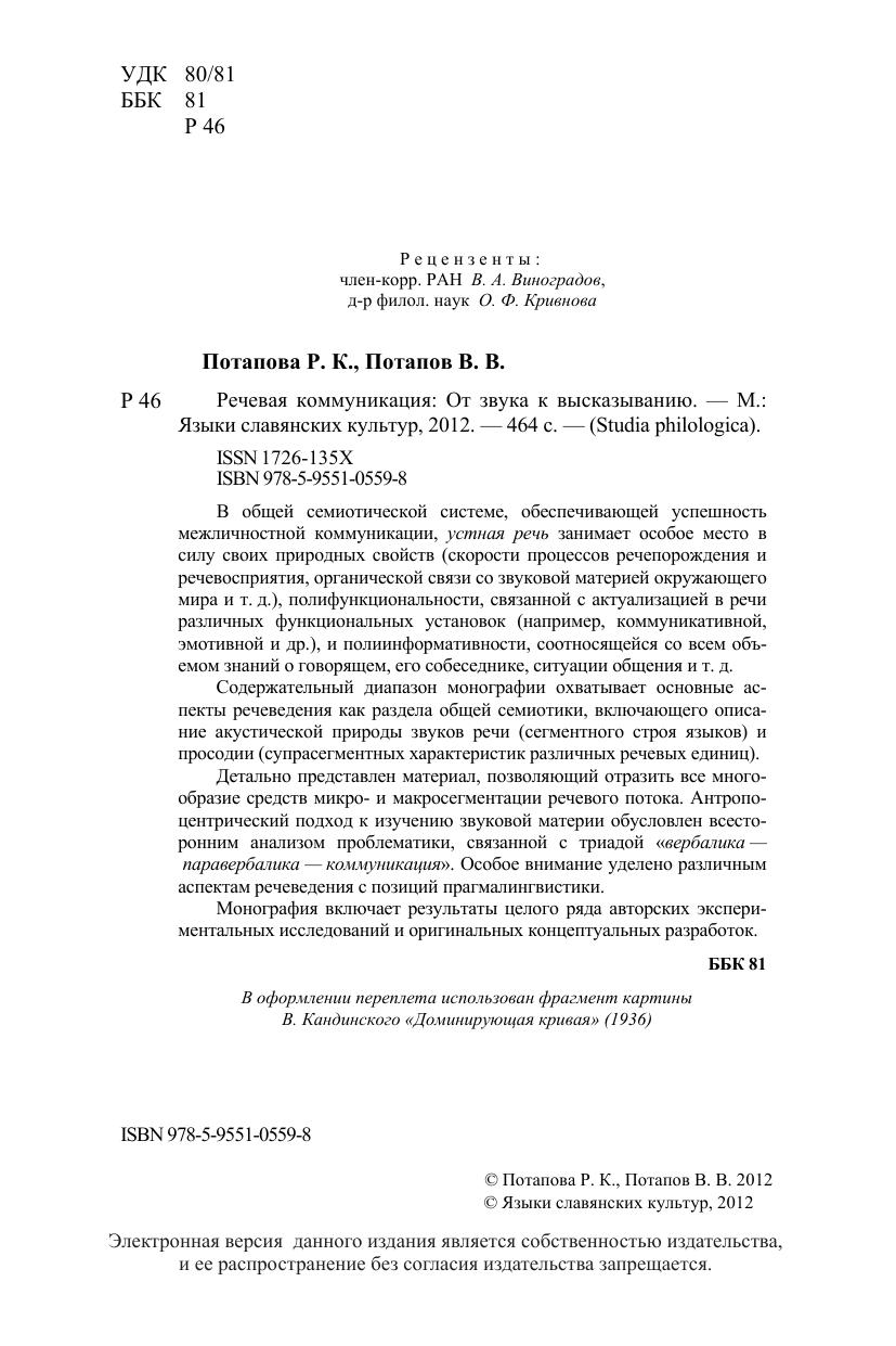 Авторы: Потапова Р. К., Потапов В. В.