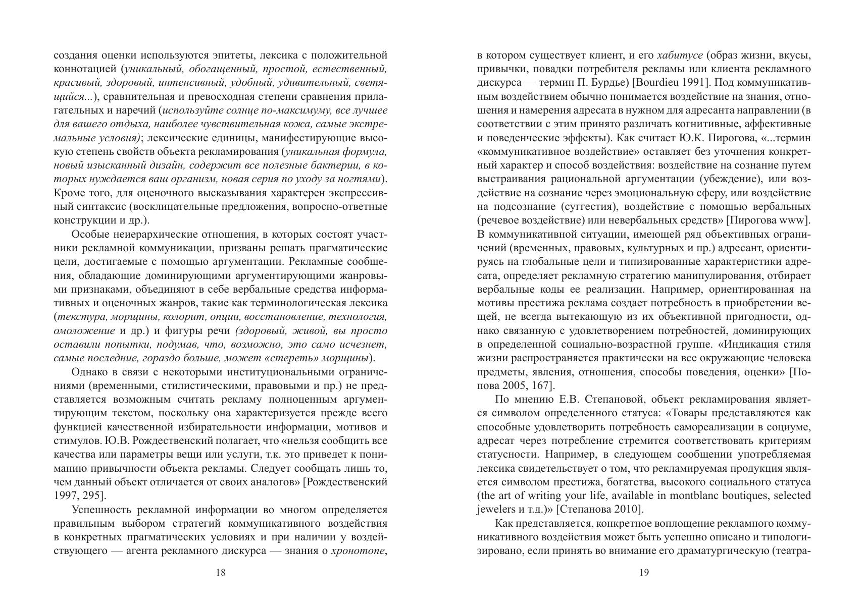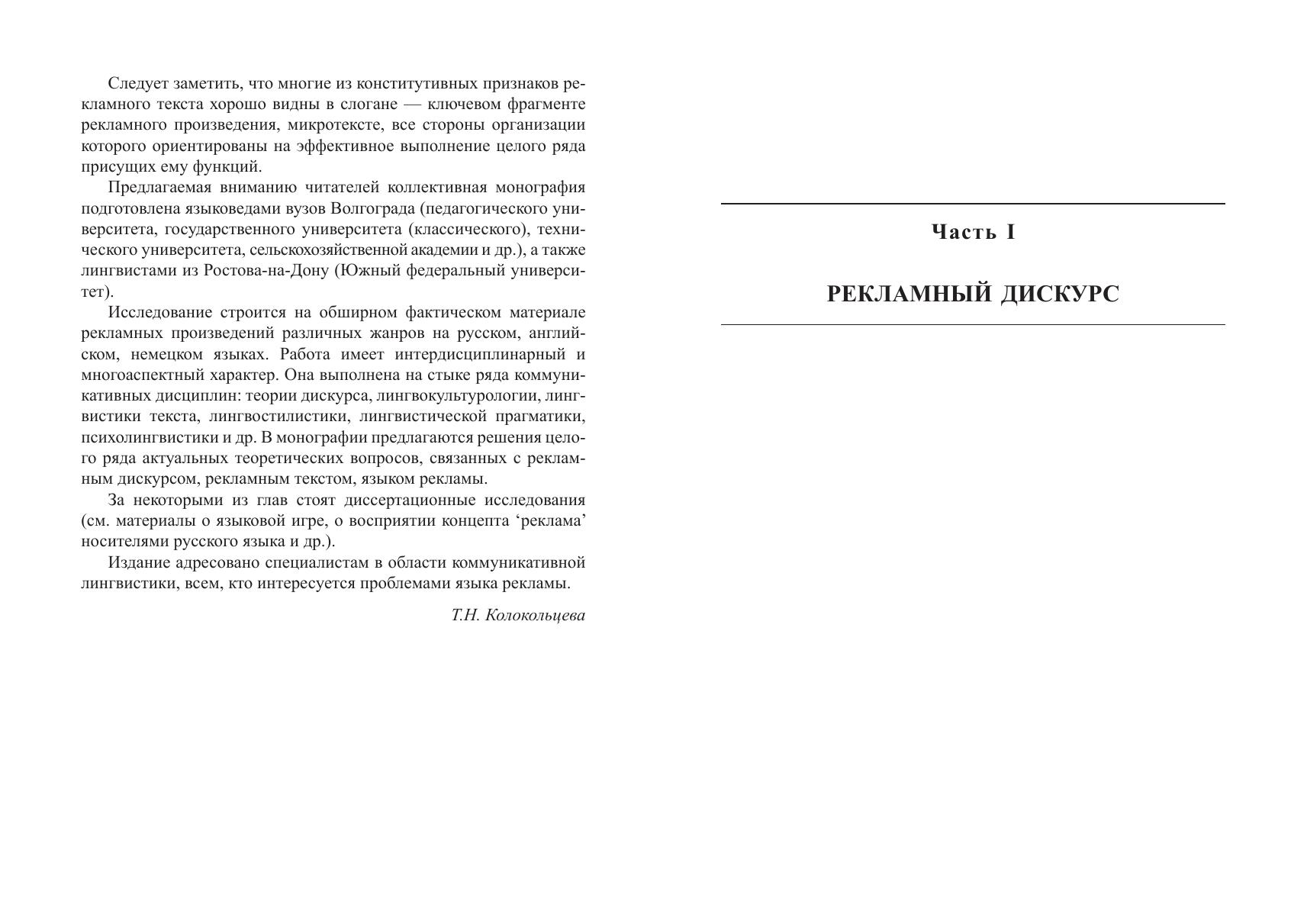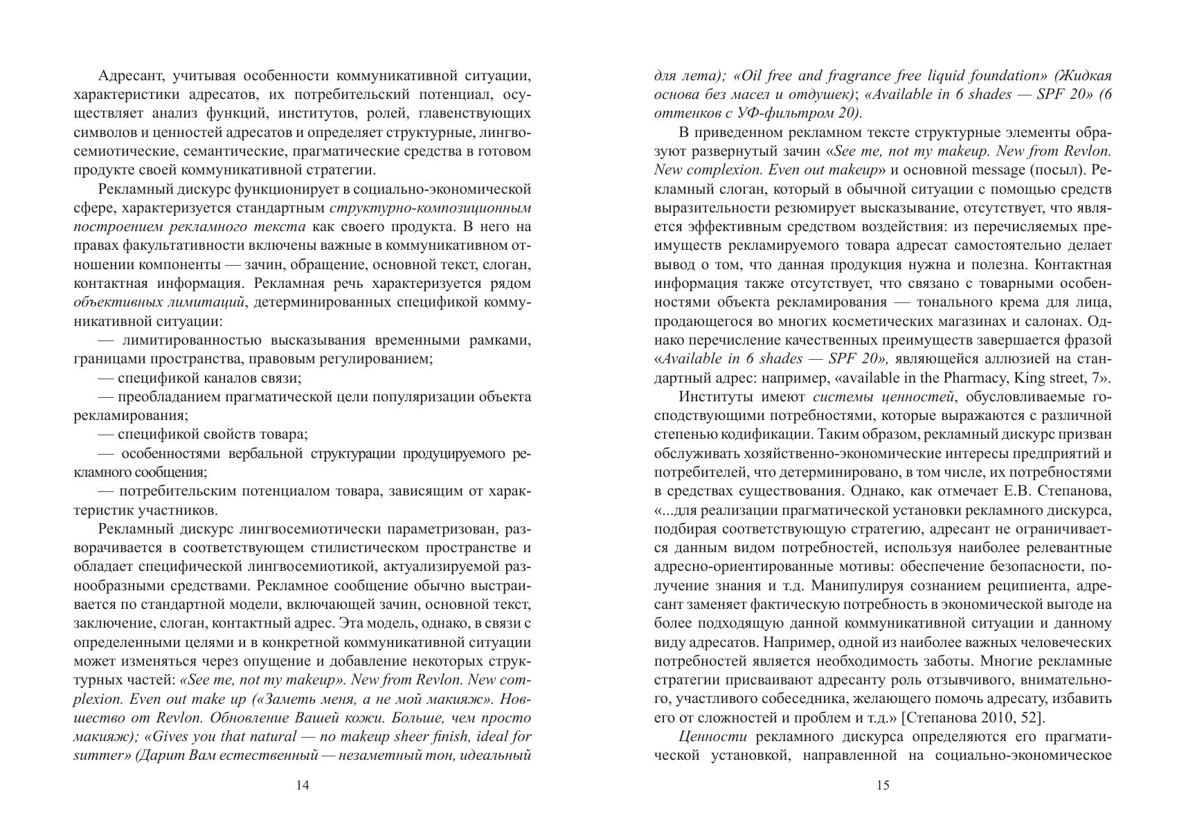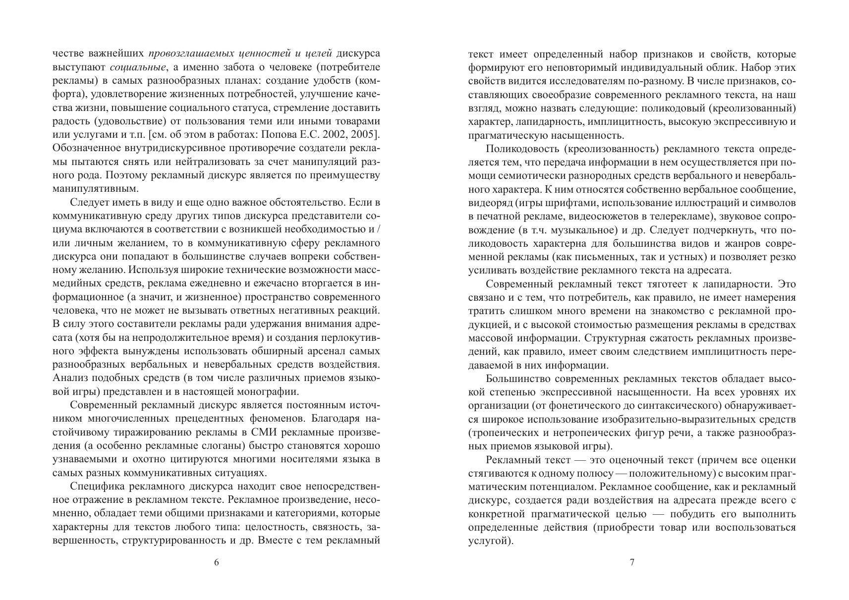 Коллективная монография содержит результаты подробного исследования рекламного дискурса (общая характеристика, коммуникативные стратегии и тактики, базовые концепты и ценности, тенденции развития), а также многоаспектного анализа рекламного текста и его составляющих (в частности, слогана). Большое внимание уделяется характеристике способов создания языковой игры. Рассматриваются приемы манипулятивного воздействия в современной рекламе, а также проблемы соблюдения / несоблюдения в рекламной практике норм культуры речи. Для специалистов в области коммуникативной лингвистики и теории дискурса, для всех, кто интересуется особенностями языка рекламы.