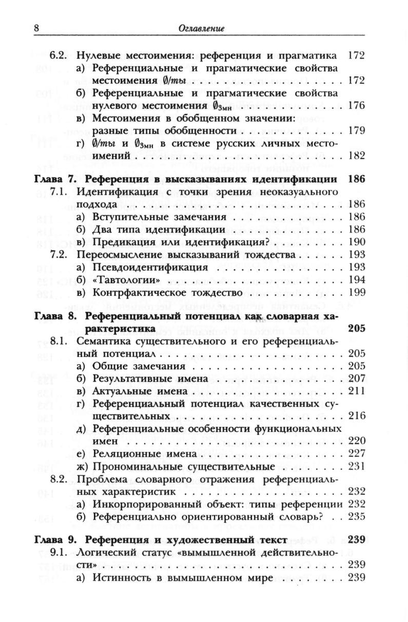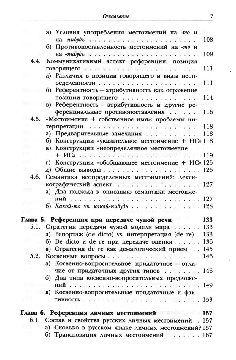 Книга посвящена различным сторонам отражения в русском языке внеязыковой действительности. Первая часть посвящена проблемам рефренции, т.е. описанию того, как механизмы, задающие способ соотнесения языковых выражений с внеязыковой действительностью, определяют функционирование различных уровней языковой системы русского языка. В частности, рассматриваются проблемы, связанные с семантикой и синтаксисом местоимений, правила «семантического согласования» предиката и связанных с ним имен, интерпретация морфем в составе сложного слова, высказывания тождества и т.д. Во второй части рассматриваются ключевые идеи русской языковой картины мира, т. е. совокупность представлений об устройстве мира, которые говорящими на русском языке воспринимаются как сами собою разумеющиеся, и делается попытка выявить связь этих представлений с некоторыми специфическими особенностями русской культуры. В частности, рассматривается семантика ряда трудно переводимых русских слов, обсуждается вопрос о том, каков образ человека в русской языковой картине мира, как в ней представлены время и пространство, какие бытовые представления и общие жизненные установки в неявном виде закодированы в значении русских слов, в чем заключаются особенности задаваемых русским языком этических представлений.