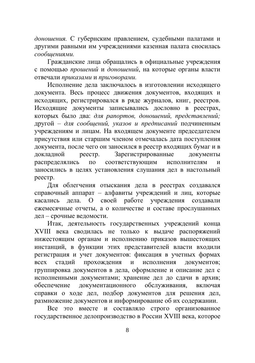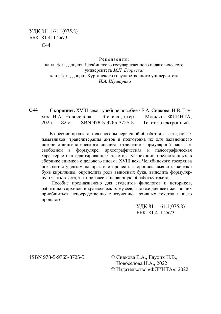 В пособии предлагаются способы первичной обработки языка деловых памятников: транслитерация актов и подготовка их для дальнейшего историко-лингвистического анализа, отделение формулярной части от свободной в формуляре, археографическая и палеографическая характеристика адаптированных текстов. Ксерокопии предложенных в сборнике снимков с делового письма XVIII века Челябинского госархива позволят студентам на практике прочесть скоропись, выявить начерки букв кириллицы, определить роль выносных букв, выделить формулярную часть текста, т.е. произвести первичную обработку текста. Пособие предназначено для студентов филологов и историков, работников архивов и краеведческих музеев, а также для всех желающих приобщиться непосредственно к изучению архивных текстов нашего прошлого.