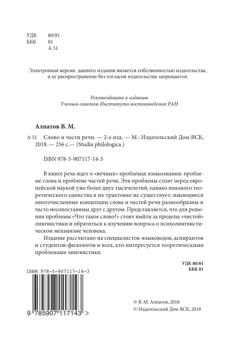В книге речь идет о "вечных" проблемах языкознания: проблеме слова и проблеме частей речи. Эти проблемы стоят перед европейской наукой уже более двух тысячелетий, однако никакого теоретического единства в их трактовке не существует, имеющиеся многочисленные концепции слова и частей речи разнообразны и часто несопоставимы друг с другом. Представляется, что для решения проблемы "Что такое слово?" стоит выйти за пределы "чистой" лингвистики и обратиться к изучению вопроса о психолингвистическом механизме человека. Издание рассчитано на специалистов-языковедов, аспирантов и студентов-филологов и всех, кто интересуется теоретическими проблемами лингвистики.