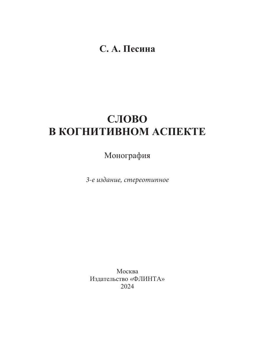 Слово в когнитивном аспекте: курс лекций
