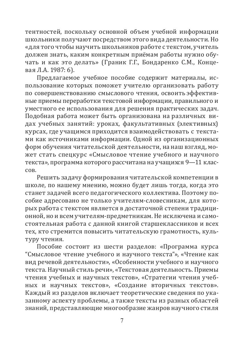 Учебное пособие содержит теоретическую информацию и систему заданий, направленных на совершенствование смыслового чтения в процессе работы с научными и учебными текстами разных жанров на уроках и факультативных (элективных) занятиях. Изучение предложенных материалов может вооружить читателей знаниями и практическими умениями, необходимыми в учебной и профессиональной деятельности.