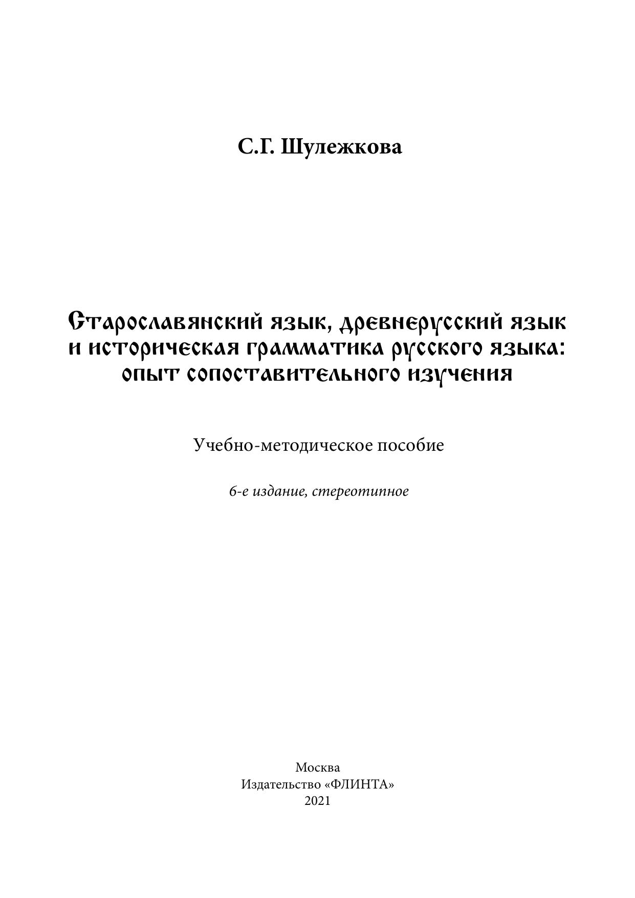 Старославянский язык, древнерусский язык и историческая грамматика русского языка: опыт сопоставительного изучения