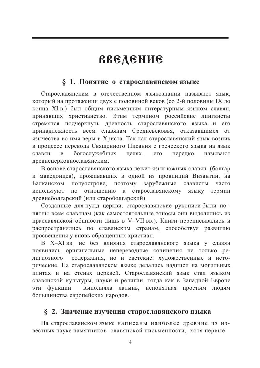Учебное пособие является руководством к самостоятельному овладению курсом старославянского языка. В книге содержатся теоретические сведения с учетом новейших достижений палеославистики, методические указания к их освоению, контрольные задания с образцами выполнения, таблицы, алгоритмы, отрывки из старославянских памятников с комментариями и схемами анализа языковых явлений.