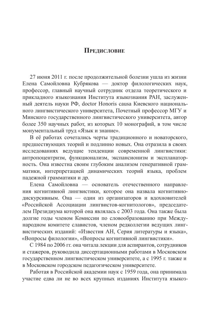 В настоящем издании собраны последние работы Е.С. Кубряковой - выдающегося лингвиста, создателя ономасиологического направления в отечественной лингвистике, основателя когнитивно-дискурсивной парадигмы лингвистического исследования как одного из ведущих направлений когнитивной науки в нашей стране, автора новаторских идей и новых подходов к описанию языковых явлений. Работы, представляемые вниманию читателя, были опубликованы в 2005-2011 гг. в нескольких выпусках сборника "Когнитивные исследования языка", изданных Институтом языкознания РАН совместно с Тамбовским государственным университетом им. Г.Р. Державина, а также в журнале "Вопросы когнитивной лингвистики" и в некоторых других сборниках научных трудов последних лет. Книга представляет собой дальнейшее развитие и разъяснение тех ключевых понятий когнитивной науки и когнитивной лингвистики, которые содержатся в "Кратком словаре когнитивных терминов" (1996), изданном под редакцией Е.С. Кубряковой. Статьи расположены в тематическом порядке и дают представление о современном состоянии когнитивной лингвистики. Издание адресовано филологам, лингвистам, всем, кто интересуется актуальными проблемами современной науки о языке.