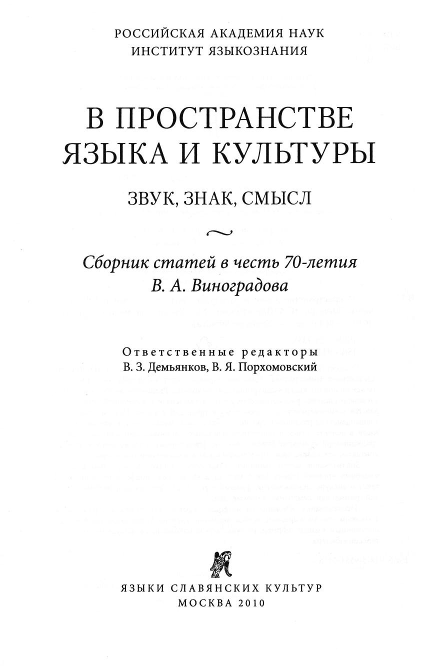В пространстве языка и культуры: Звук, знак, смысл