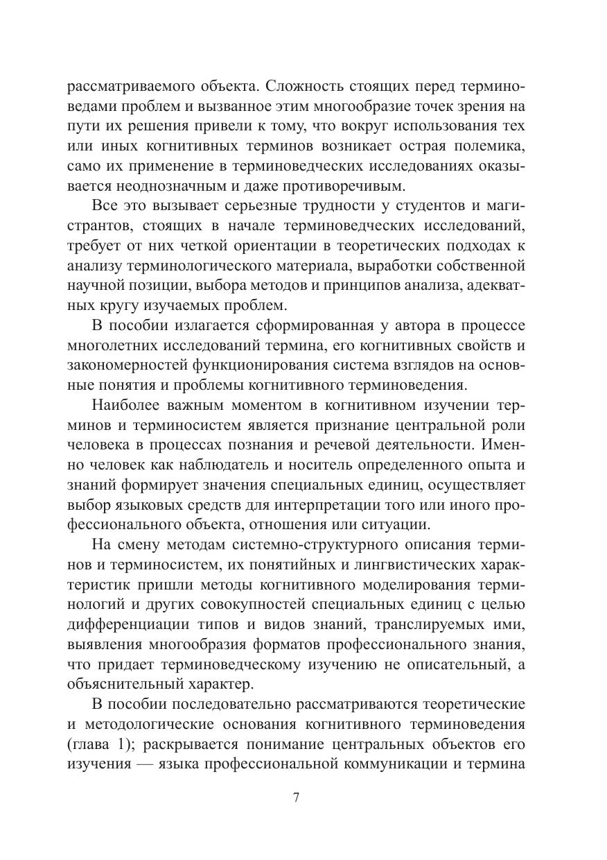 В учебном пособии содержится обзор ключевых проблем когни- тивного терминоведения как особого направления науки о терминах, отражающего современное состояние научного знания. освещаются дискуссионные вопросы природы термина и среды его функциониро-вания, взаимодействия специального и обыденного знания в едини-цах профессиональной коммуникации.