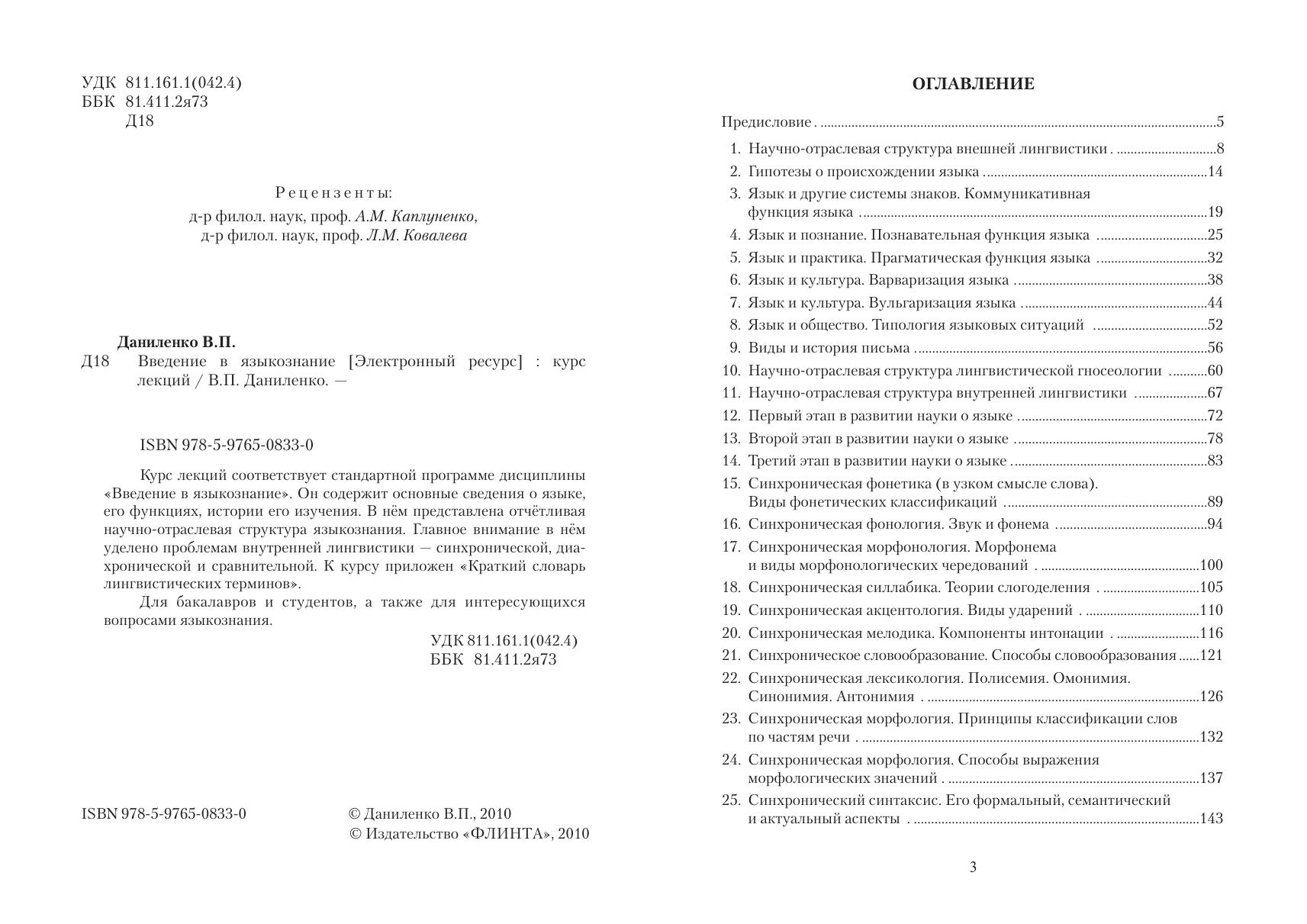 Курс лекций соответствует стандартной программе дисциплины «Введение в языкознание». Он содержит основные сведения о языке, его функциях, истории его изучения. В нём представлена отчётливая научно-отраслевая структура языкознания. Главное внимание в нём уделено проблемам внутренней лингвистики — синхронической, диахронической и сравнительной. К курсу приложен «Краткий словарь лингвистических терминов». Для бакалавров и студентов, а также для интересующихся вопросами языкознания.