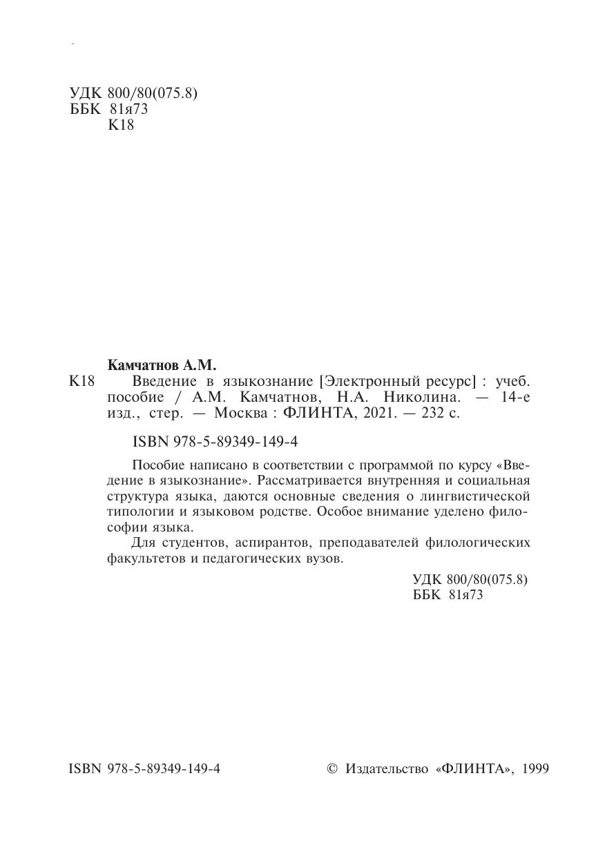 Пособие написано в соответствии с программой по курсу «Введение в языкознание». Рассматривается внутренняя и социальная структура языка, даются основные сведения о лингвистической типологии и языковом родстве. Особое внимание уделено философии языка. Для студентов, аспирантов, преподавателей филологических факультетов и педагогических вузов.