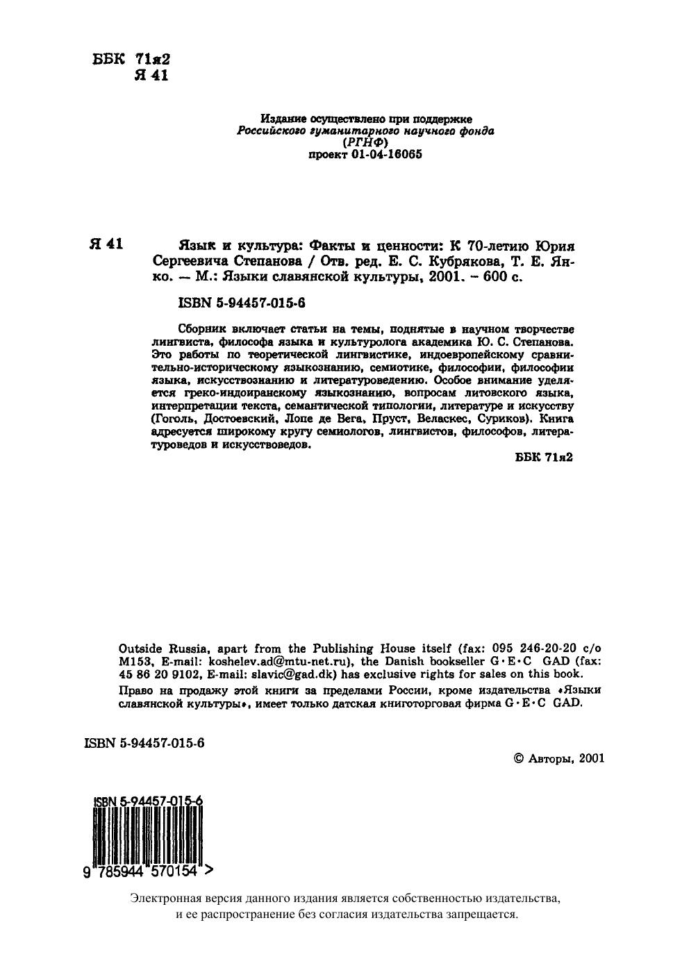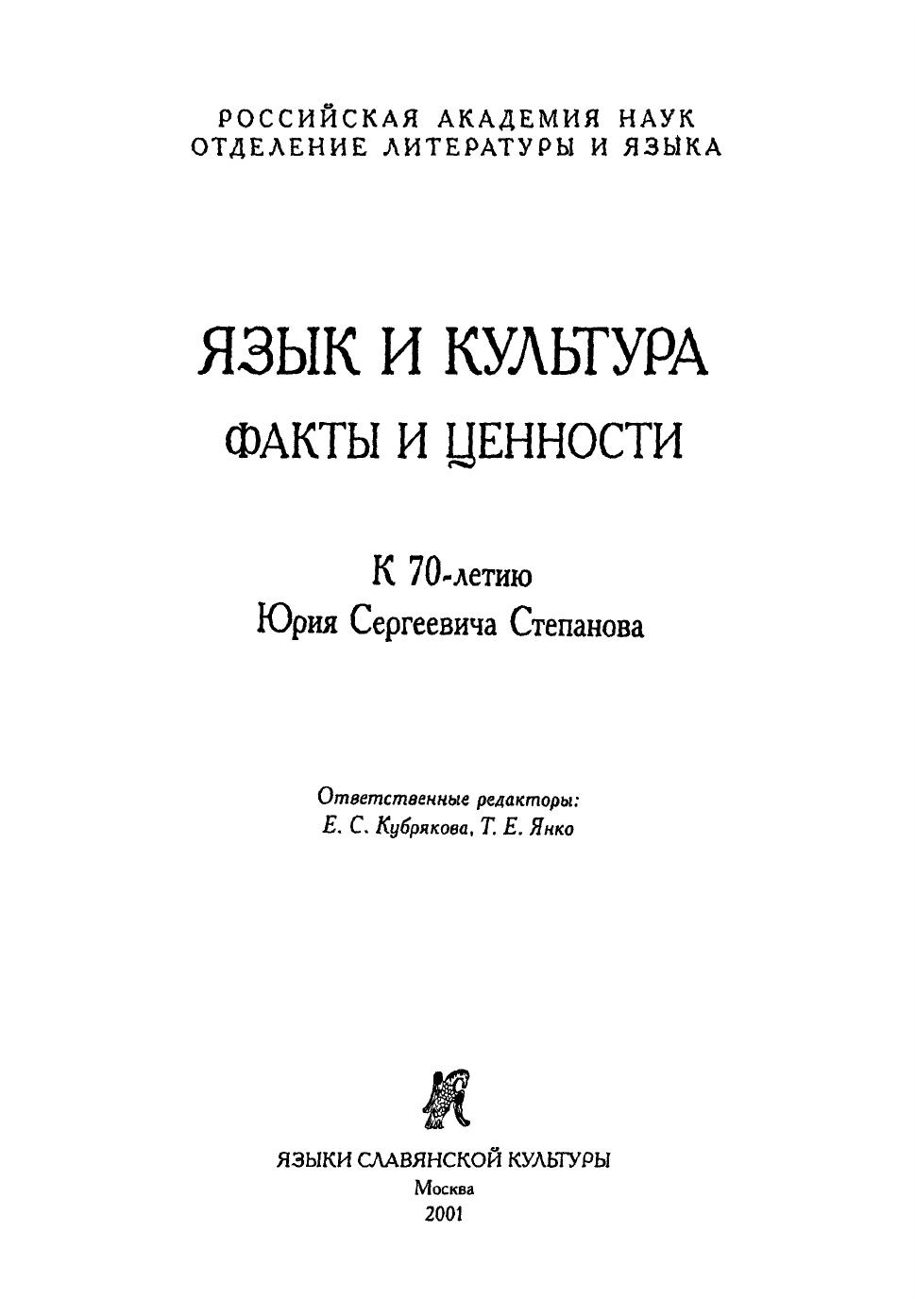 Язык и культура: Факты и ценности: К 70-летию Ю. С. Степанова